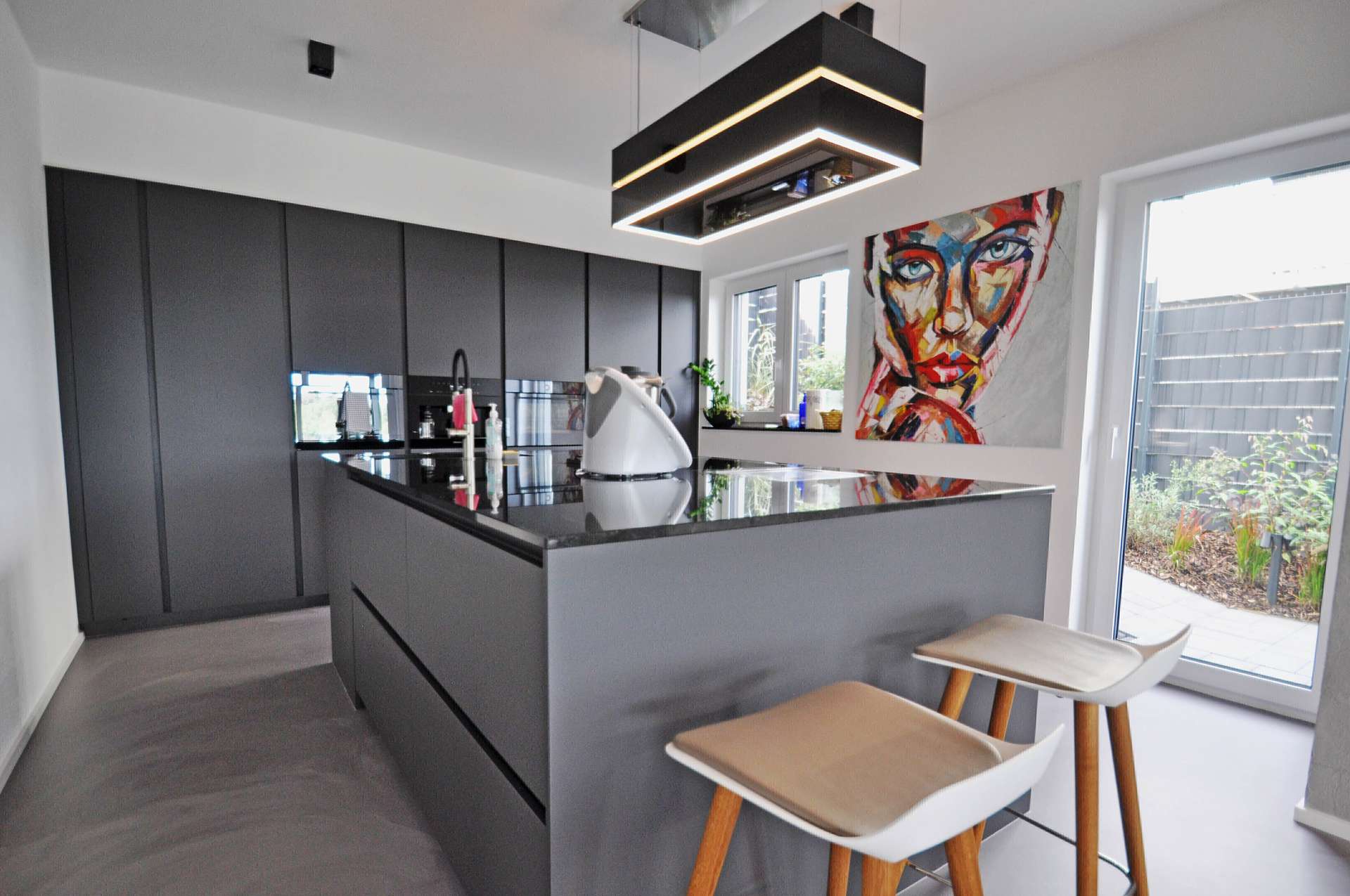Besonderes Highlight: Der integrierte Weinkühler in der Wand sowie die luxuriöse Designerküche (NP ca. 68.000 €) mit Kaffeevollautomat, Dampfgarer, Teppanyaki-Grill und großzügiger Kochinsel – bereits im Kaufpreis enthalten.