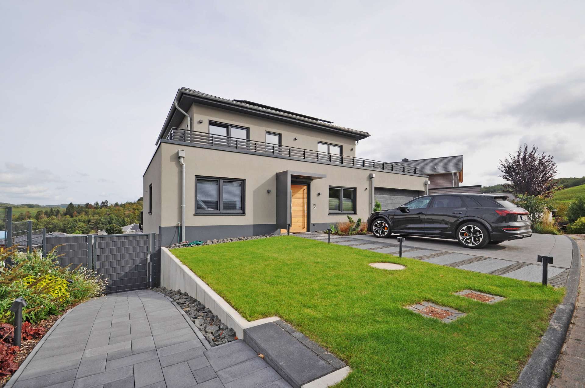 Dieses außergewöhnliche Neubau-Anwesen im stilvollen Bauhaus-Design vereint moderne Architektur, luxuriöse Ausstattung und eine traumhafte Lage mit Panoramablick über den Ort Bekond und die umliegende Natur. Die hochwertige Kombination aus Größe, Grundriss, Design und Technik macht diese Immobilie zu einem echten Unikat für höchste Wohnansprüche.