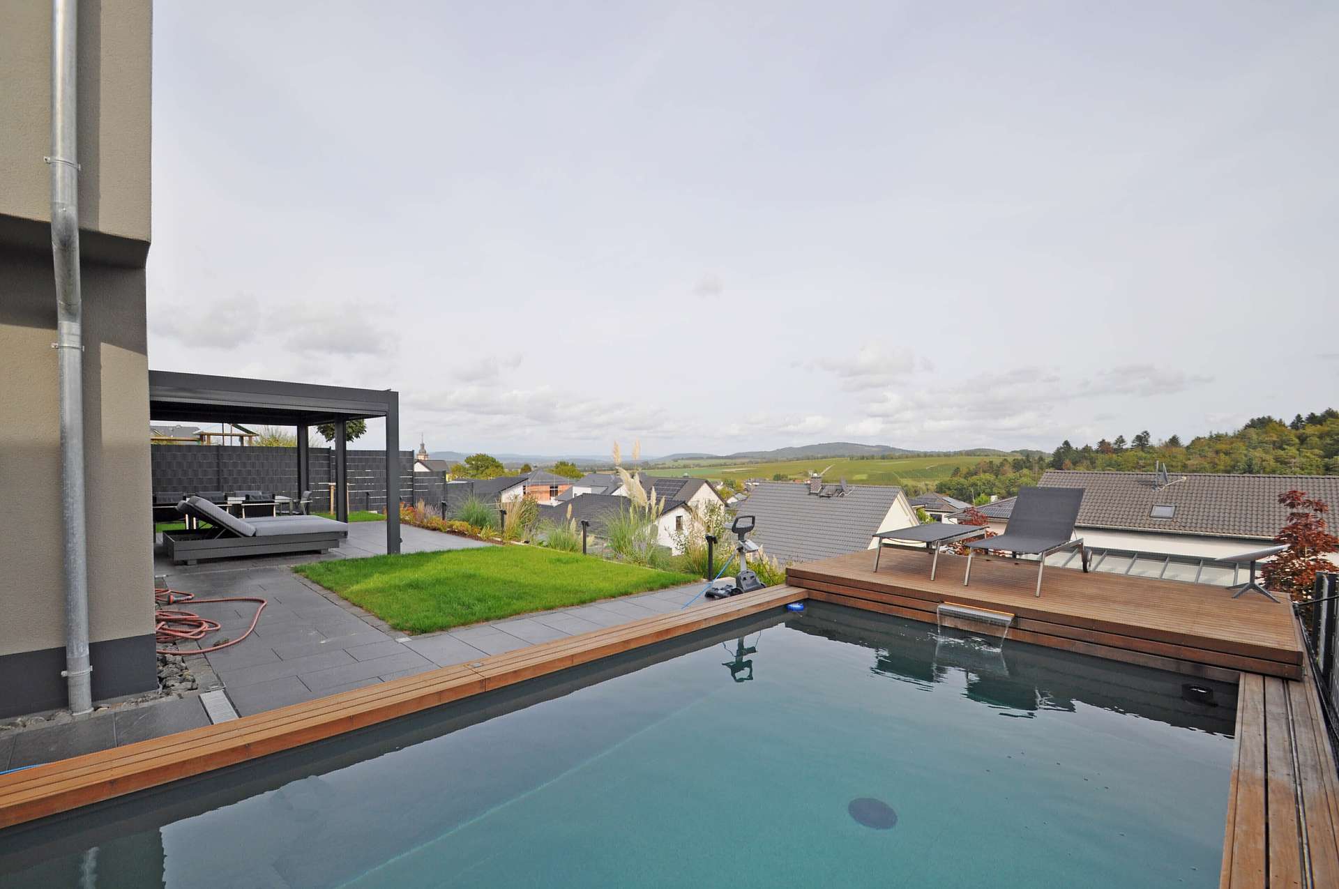 Ein lichtdurchfluteter Grundriss, modernste Haustechnik, erstklassige Baumaterialien und ein mediterran angelegter Garten mit Salzwasserpool samt Gegenstromanlage – dieses Anwesen lässt keine Wünsche offen. Die ruhige Lage am Ortsrand und die kompromisslose Qualität garantieren Ihnen ein neues Zuhause der Extraklasse.