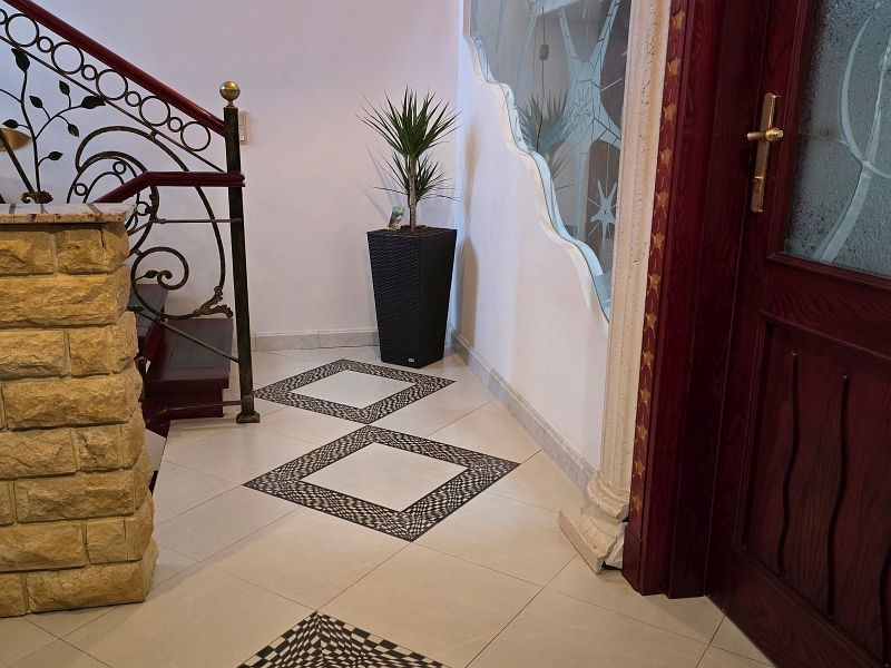 Het hele huis is met veel aandacht voor detail gebouwd. De vloer in de woon- en eetkamer is gelegd met hoogwaardig marmer.