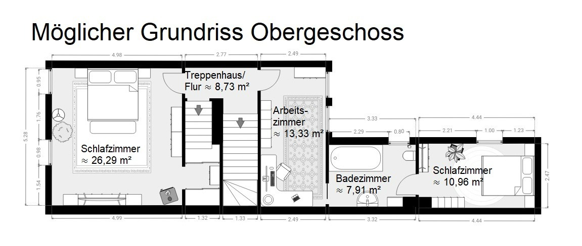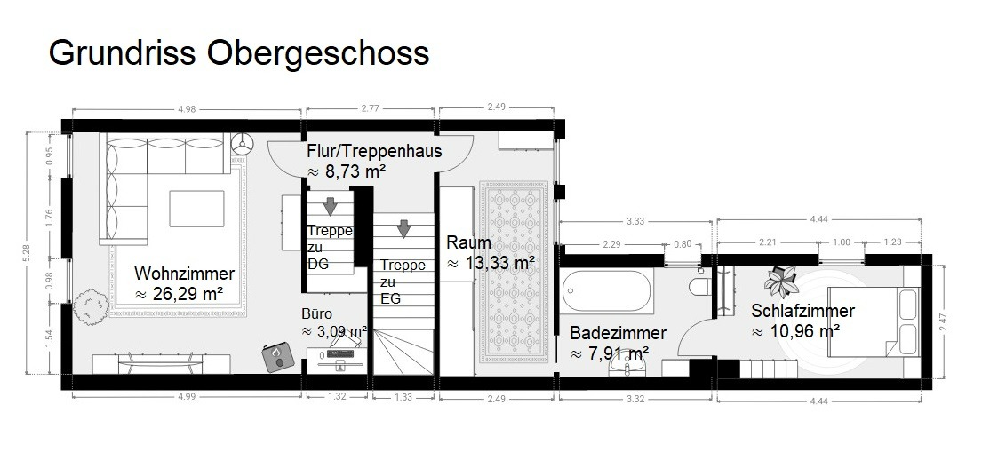 Die 5 x15 m sind optimal zwei Etagen aufgebaut,