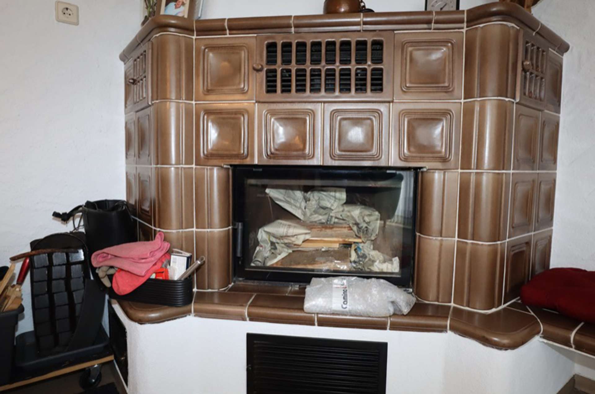 Holz- / Kunststofffenster mit Doppelverglasung. Nachtspeicheröfen, Kaminofen. Warmwasserbereitung über Durchlauferhitzer.