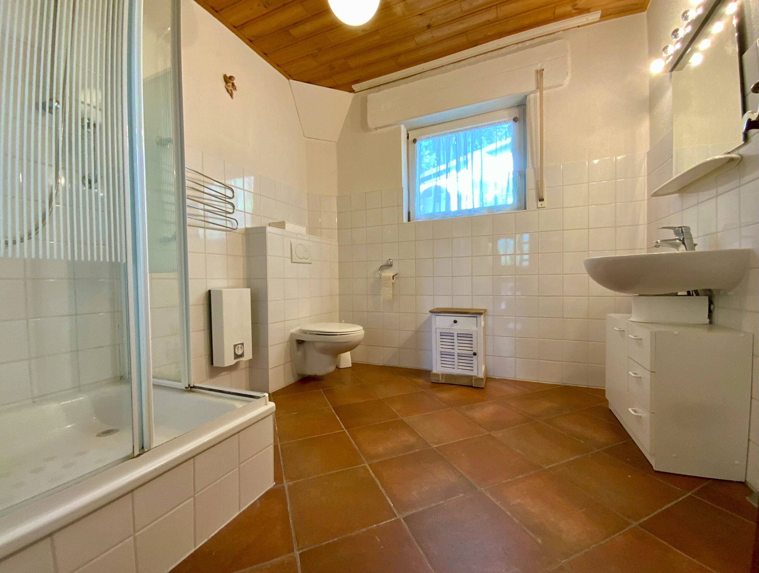 Die Warmwasseraufbereitung läuft über Durchlauferhitzer.