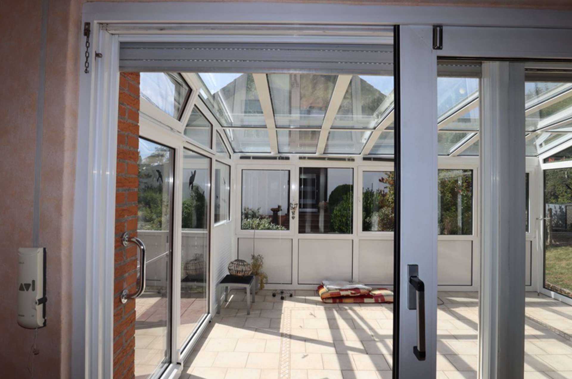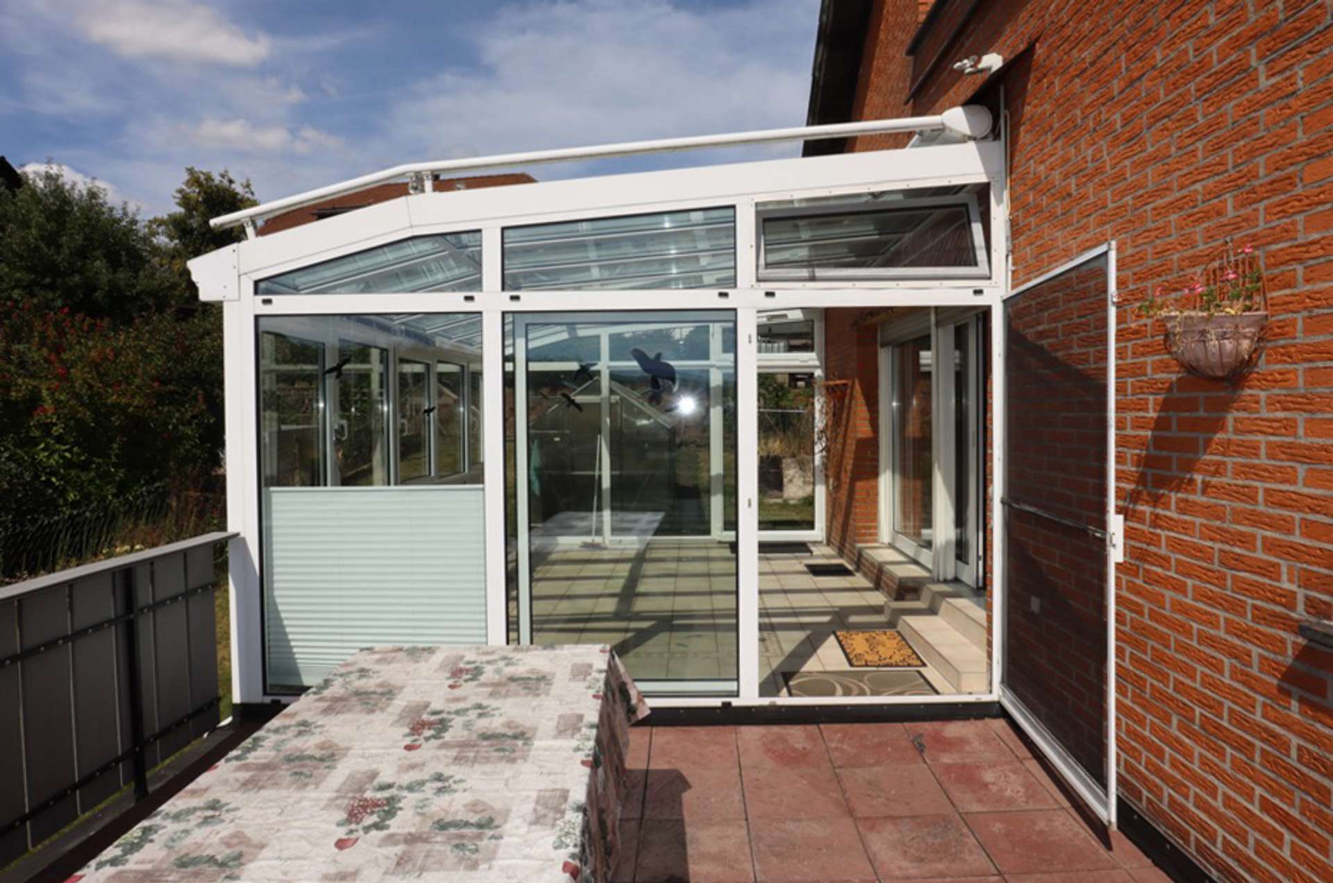 Die Wohnfläche beträgt ca.184 m². Im Erdgeschoss befindet sich eine kleine Wohnung mit Wohnzimmer, Küche, Bad mit barrierefreier Dusche und einem Schlafzimmer. Zudem befindet sich dort ein Kellerraum mit Zugang zur Garage und ein Hauswirtschaftsraum. Im Obergeschoss befindet sich die Hauptwohnung mit Wohnzimmer, Esszimmer, Küche, zwei Schlafzimmern, Bad, Gäste-WC. Das geräumige Wohnzimmer verfügt über einen Zugang zum Wintergarten und von hier betreten Sie die zusätzliche große Sonnenterrasse. Hier können Sie bei jedem Wetter Zeit draußen verbringen.