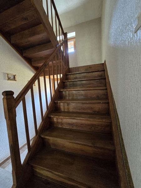 Über eine Holztreppe gelangt man in das Obergeschoss.