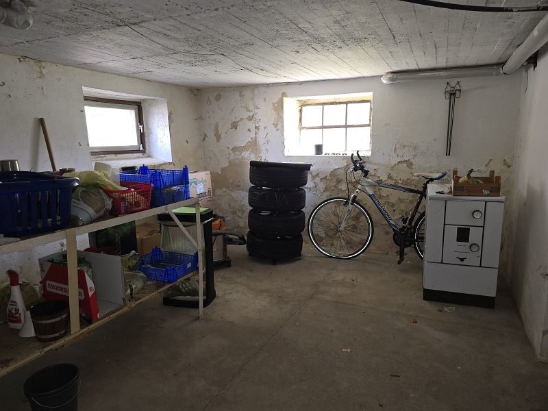 Das Wohnhaus ist unterkellert. Hier befinden sich die Ölheizung mit den Öltanks sowie mehrere Lager- und Abstellräume.
