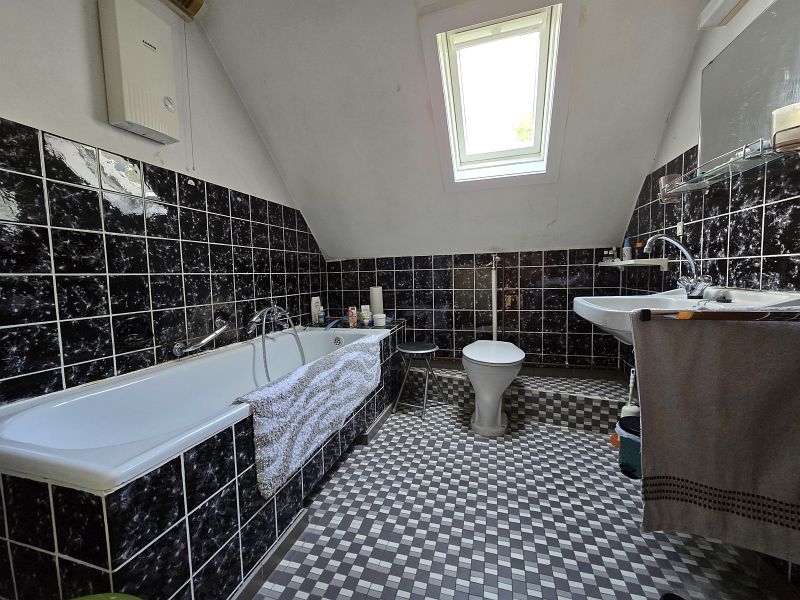 Im Erdgeschoss befinden sich die Diele mit Treppenhaus, das Esszimmer mit danebenliegender Küche, ein hübsches kleines Wohnzimmer und ein Schlaf- oder Gästezimmer.