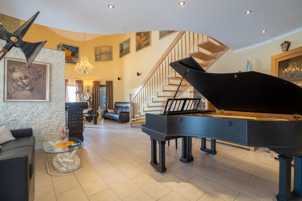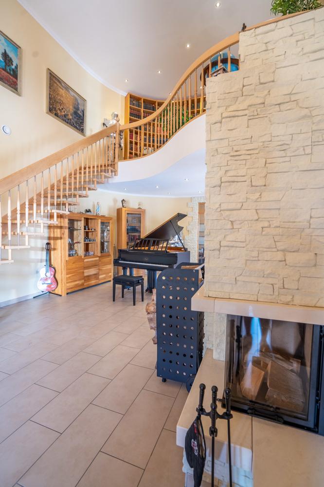 Hier verbringen Sie gemütliche Abende am Kamin, dem Piano oder der Bibliothek in der Galerie im Obergeschoss, welche einen herrlichen Blick in den Wohnbereich bietet.