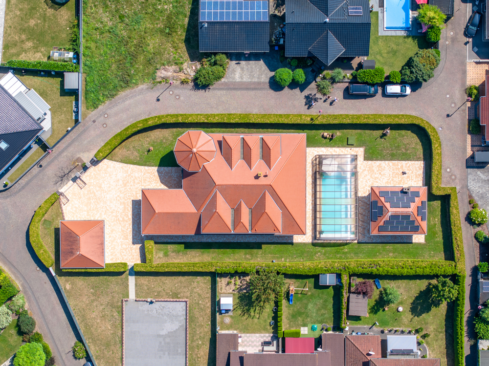 Der Außenbereich lässt ebenfalls keine Wünsche offen. Ihre freie Zeit verbringen Sie hier in Ihrem beheizten Schwimmbecken mit einer Größe von 10m * 5m mit variabler Glasüberdachung, Poolpartys mit Freunden und Familie richten Sie im angrenzenden Poolhaus aus.