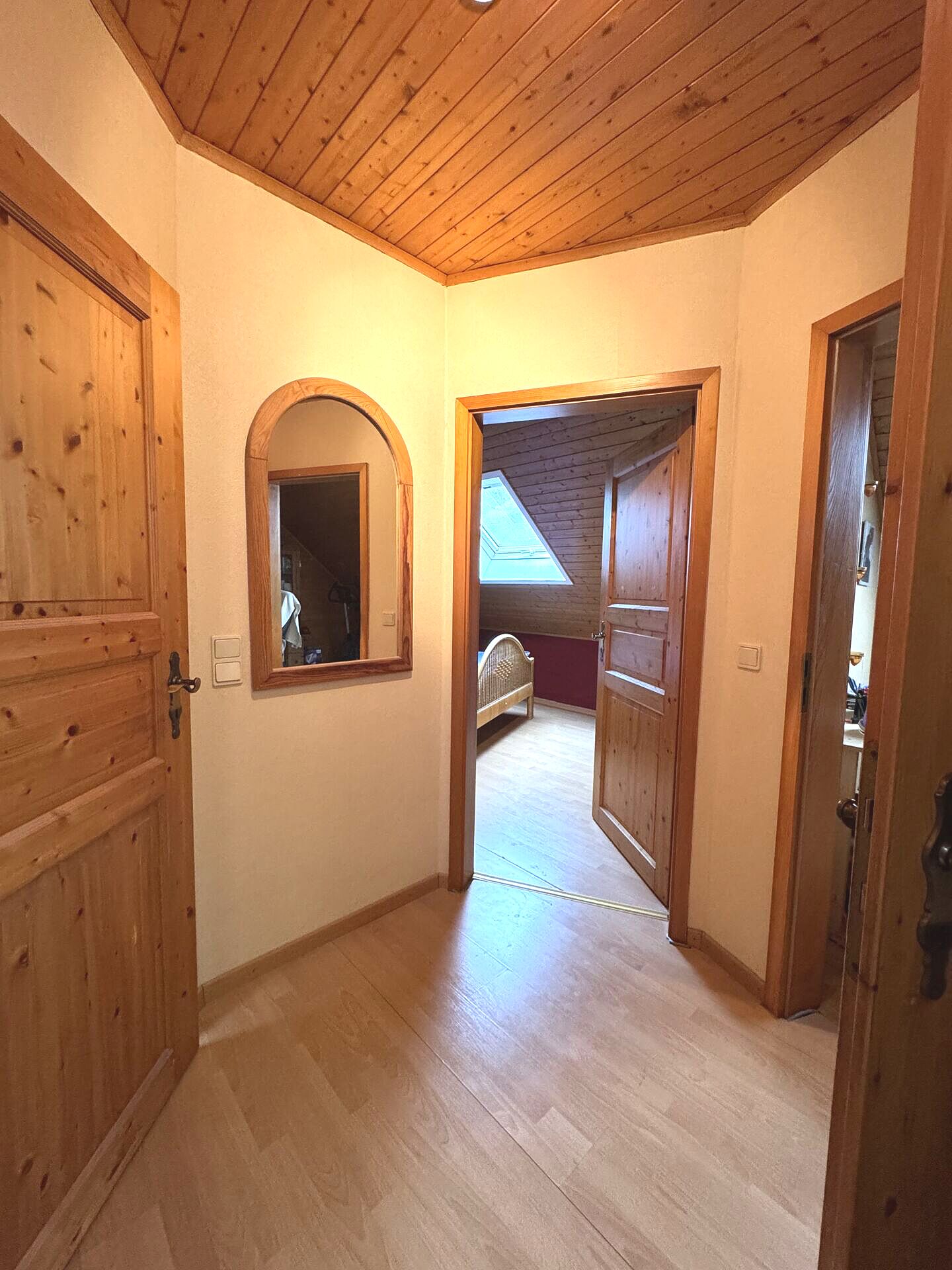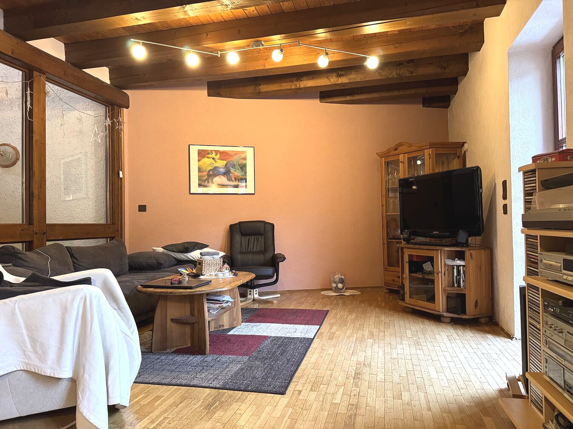 Der rechte Doppelhaus (Hausnummer 8) wurde im Jahr 1990 aufwendig umgebaut. Ursprünglich eine Scheune, bietet es heute mit 95 m² Wohnfläche modernen Wohnkomfort, einschließlich eines stilvollen Badezimmers und eines praktischen Gäste-WCs. Eine einladende Terrasse erweitern den Wohnraum ins Freie und schaffen ideale Plätze zum Entspannen und Genießen.
