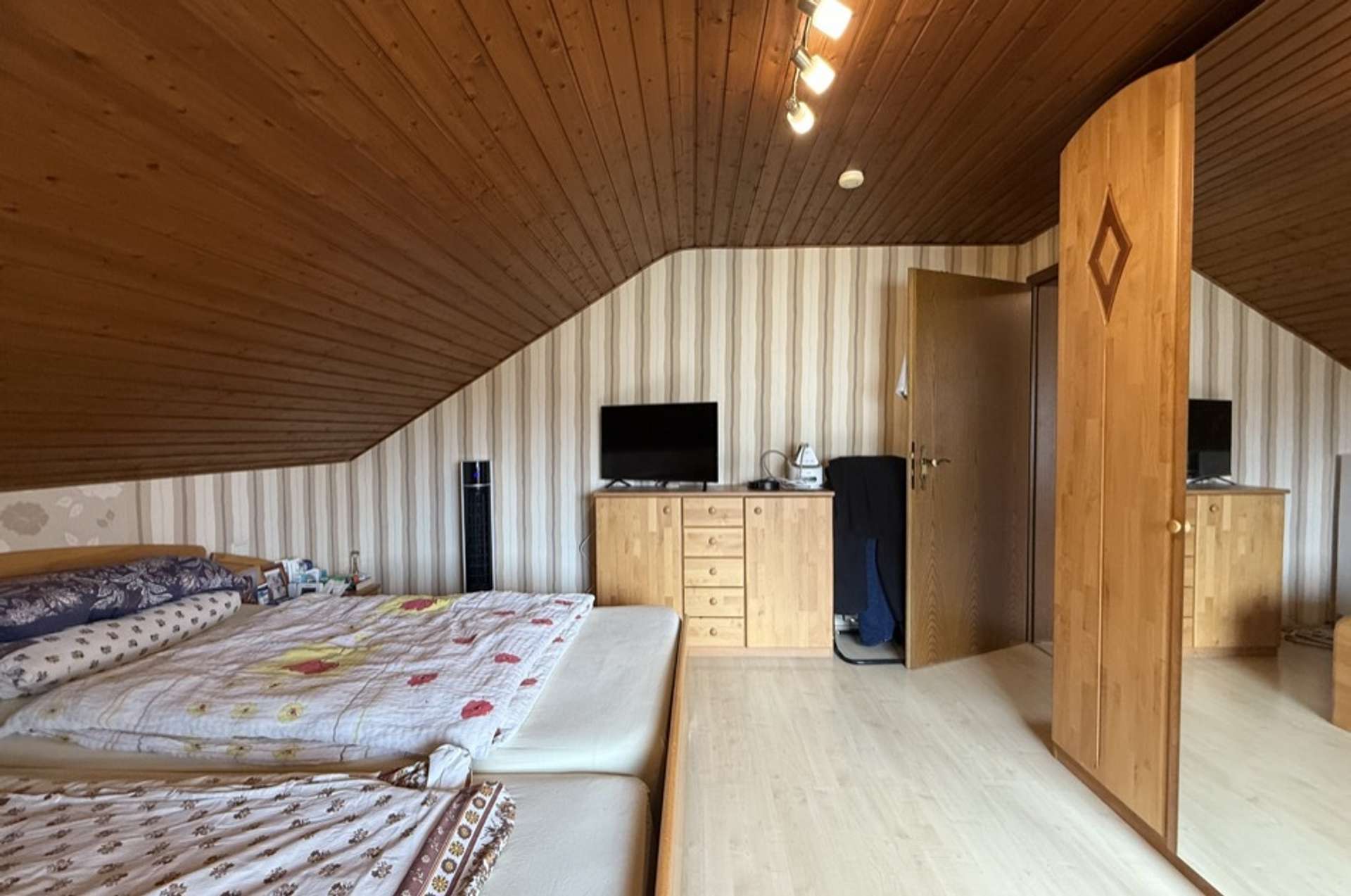 Die Wohnfläche beträgt 140 m2. Das Objekt verfügt über insgesamt 3 Schlafzimmer, 2 Bäder und eine große zum Wohn-/ Esszimmer offene Küche mit Pelletofen und Zugang zur Terrasse. In den warmen Sommermonaten findet das Leben draußen statt. Die Raumaufteilung ist großzügig. Durch sichtbare Holzbalken strahlen die Räume Behaglichkeit aus. Unterstützt wird dieser Effekt noch durch den schönen Pelletofen. Ergänzt wird das Raumangebot im Erdgeschoss durch ein Schlafzimmer und ein Bad. Im Dachgeschoss befindet sich das großzügige Studio, das aktuell als Wohnzimmer genutzt wird. Der Raum verfügt über einen Balkon mit schöner Aussicht ins Grüne. Zudem befinden sich hier zwei weitere Schlafzimmer und ein zusätzliches Bad.