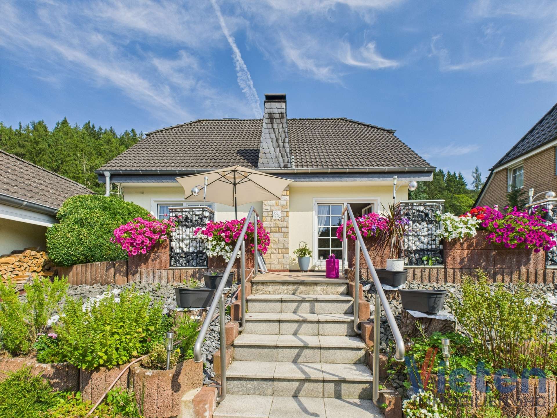 Dieses gepflegte Einfamilienhaus aus dem Jahr 1995 vereint solide Bauqualität mit einer ruhigen, naturnahen Wohnlage in der Eifel. Es handelt sich um ein Fertighaus der Firma Massa mit Erdgeschoss in Holzrahmenbauweise, einem massiv errichteten Vollkeller und einem großzügigen Grundstück von 697 m² – ideal für Familien, Ruhesuchende oder naturverbundene Paare. Das Haus bietet insgesamt ca. 117 m² Wohnfläche, verteilt auf drei Ebenen.