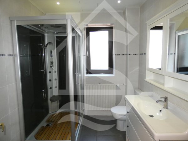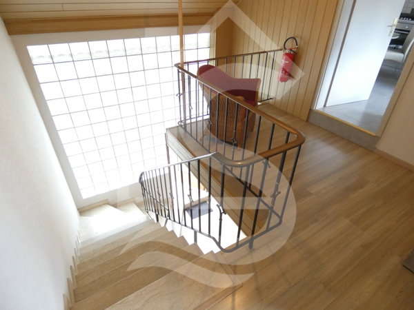 In het rechter appartement (maisonnette – ca. 45 m²) bevinden zich de slaapkamer, die toegang biedt tot de loggia, en de badkamer op de bovenverdieping. Een interne trap leidt naar de zolder en de woonkamer met keuken. Op deze verdieping bevindt zich een terras aan de straatzijde, wat zorgt voor extra zitgelegenheid. Aan de achterzijde van de maisonnette bevindt zich tevens een wintertuin.