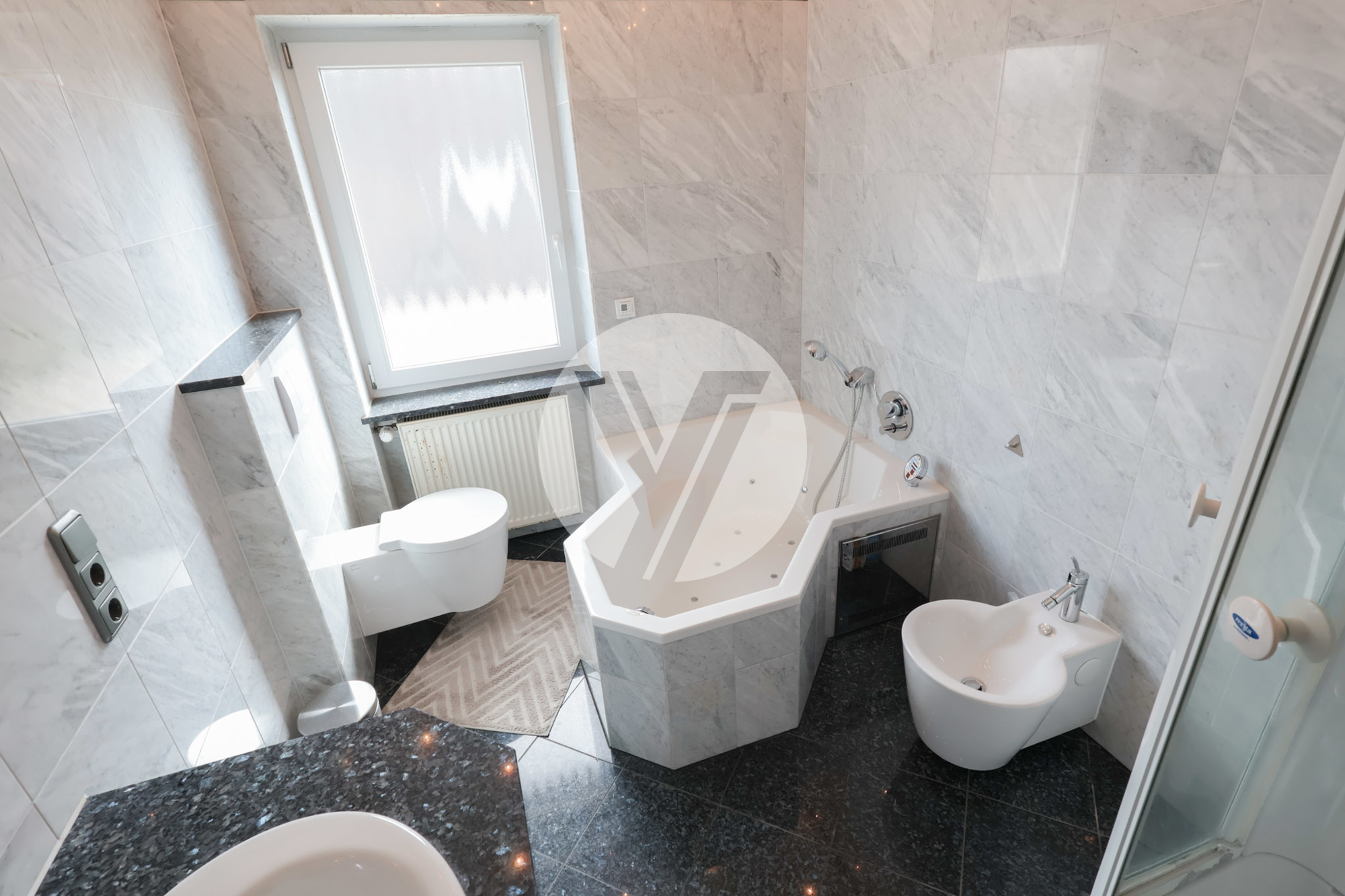 Im Untergeschoss des Hauses befindet sich eine große, abgeschlossene Einliegerwohnung, die optimale Voraussetzungen für Privatsphäre und Komfort bietet. Mit zwei Schlafzimmern, einem modernen Bad, einem gemütlichen Wohnzimmer, einer abgeschlossenen Küche sowie einem praktischen Abstellraum ist diese Wohnung perfekt für längere Besuche oder als separate Wohneinheit für ältere Familienmitglieder. Der direkte Zugang zu einem geschützten Freisitz ermöglicht es den Bewohnern, entspannte Stunden im Freien zu genießen.