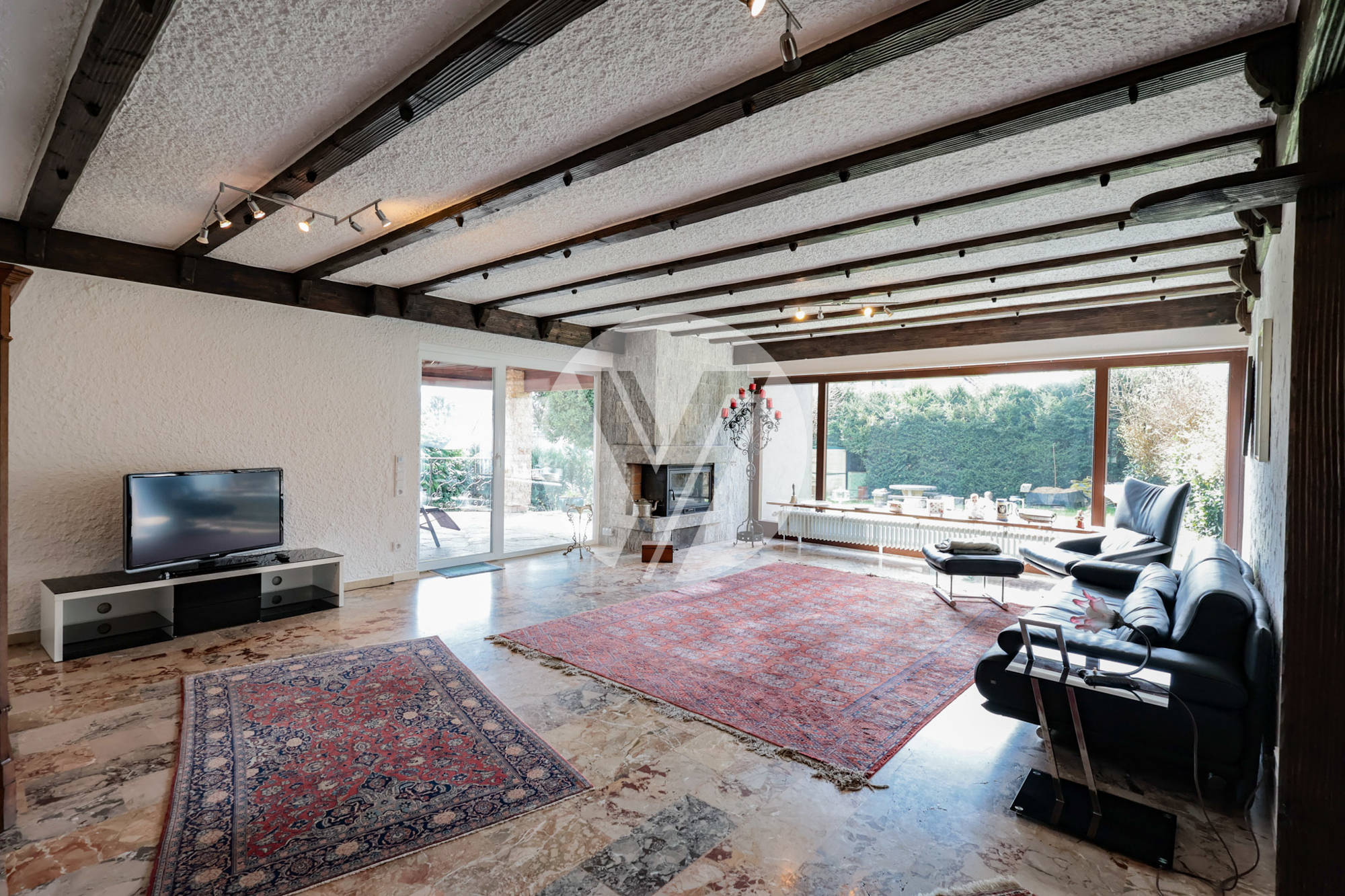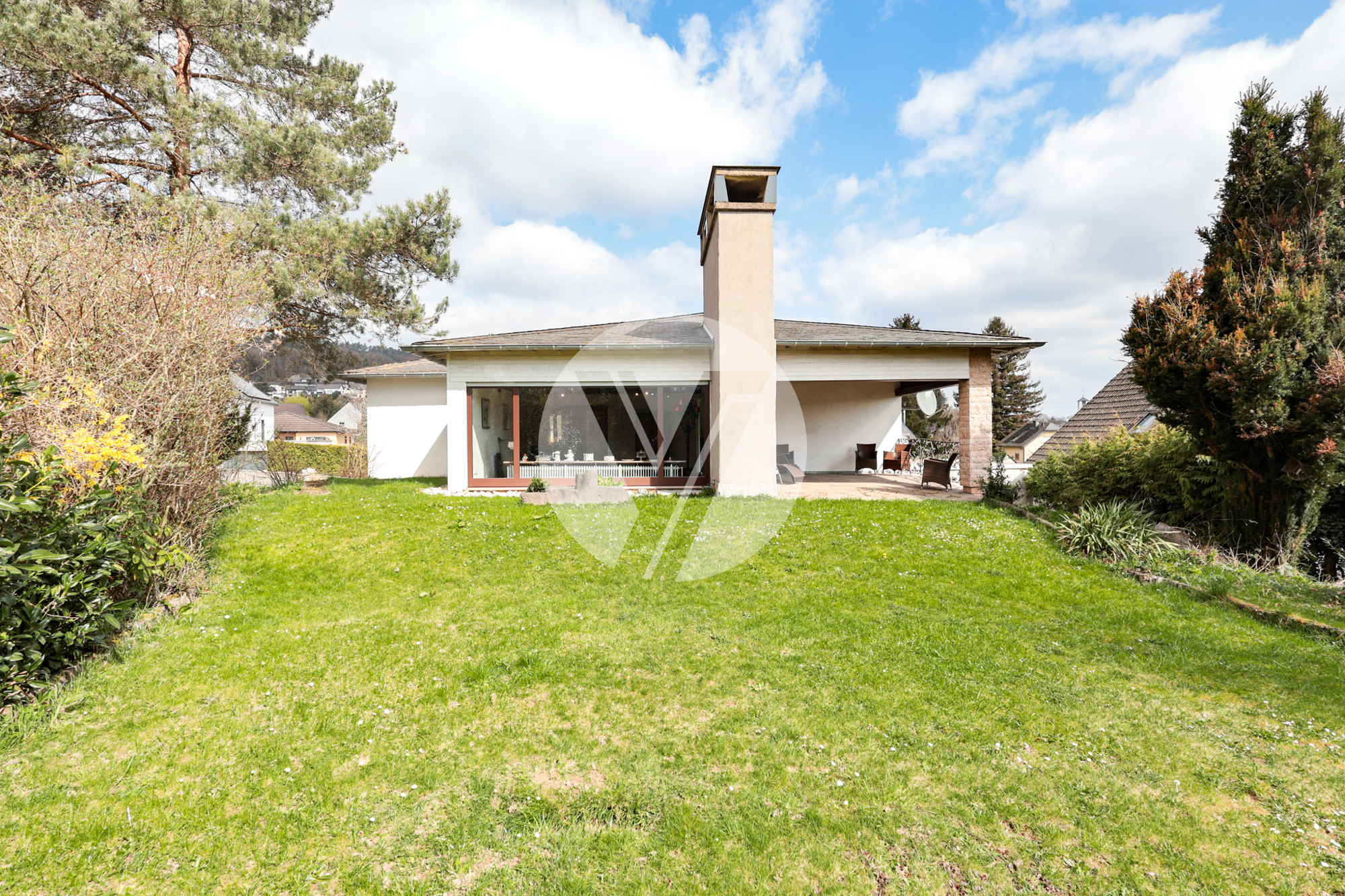 Ruime gezinswoning – bungalow met aanbouw en dubbele garage te koop in Föhren // aan de rand van de stad.