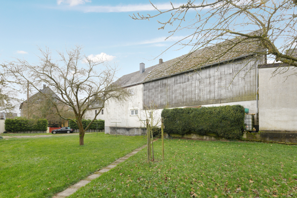 Durch die Nebengebäude hat man ausreichend Platz für Hobbys und zum Werkeln. Neben der angebauten Doppelgarage bieten die zwei Scheunen zusätzlich Stellplatzmöglichkeiten für Autos oder Wohnmobile/-wagen. Über die Scheune erreicht man außerdem den großen, pflegeleichten Garten, der noch einen alten Obstbaumbestand vorweist.