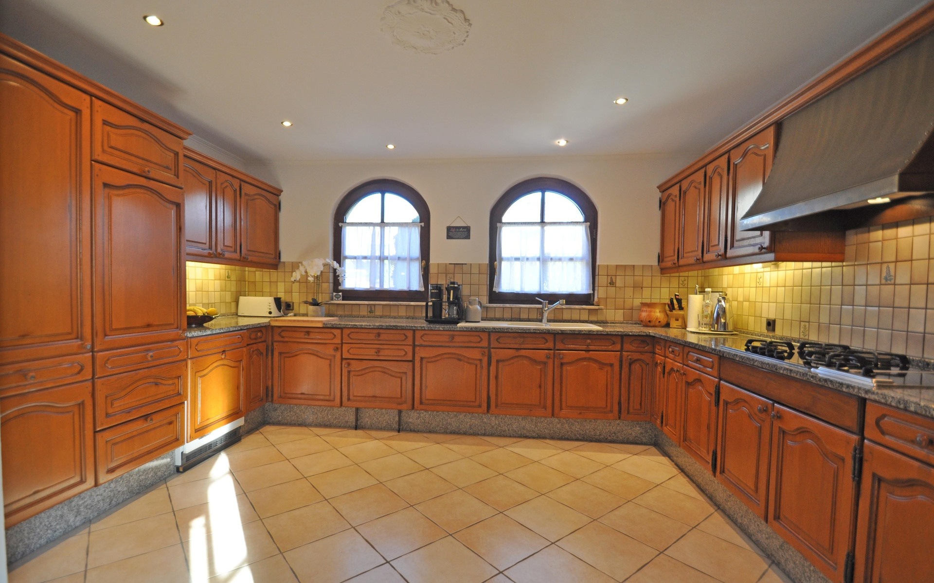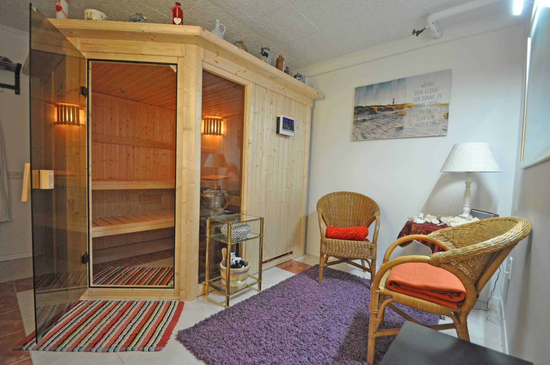 Im Souterrain befindet sich aktuell der Wellnessbereich der Hauptwohnung. Eine Sauna und ein großer Ruheraum mit Holzofen und Zugang zum Garten bieten ideale Voraussetzungen um den Alltag zu vergessen. Ein Teil der Terrasse wurde zum Wintergarten umgenutzt. Unter dem Ruheraum befindet sich noch der ehemalige Pool, welchen die Verkäufer nicht nutzen. Der Boden des Ruheraums steht allerdings nur auf Holzstelzen, sodass ein Rückbau zum Pool mühelos machbar ist. Ein WC sowie ein Bad sind natürlich auch vorhanden. Eine Küche im Souterrain kann aktuell genutzt werden um sich während der Wellnesszeit auch kulinarisch zu verwöhnen. Bei einer Umnutzung des Souterrain zu einer dritten Wohneinheit, sind Küche und Bad schon vorhanden und der Ruheraum könnte zum Wohnzimmer und die Sauna zum Schlafzimmer umfunktioniert werden. Der historische Heizungskeller dient als Lager und Abstellraum. Weiterhin sind das alte Heizöllager und zwei weitere große Kellerräume vorhanden. Aus einem dieser großen Kellerräume erreichen Sie auch die große Doppelgarage. Abgerundet wird das Souterrain durch den Waschkeller, in dem die Waschmaschinen der Haupt- und Dachgeschosswohnung stehen.