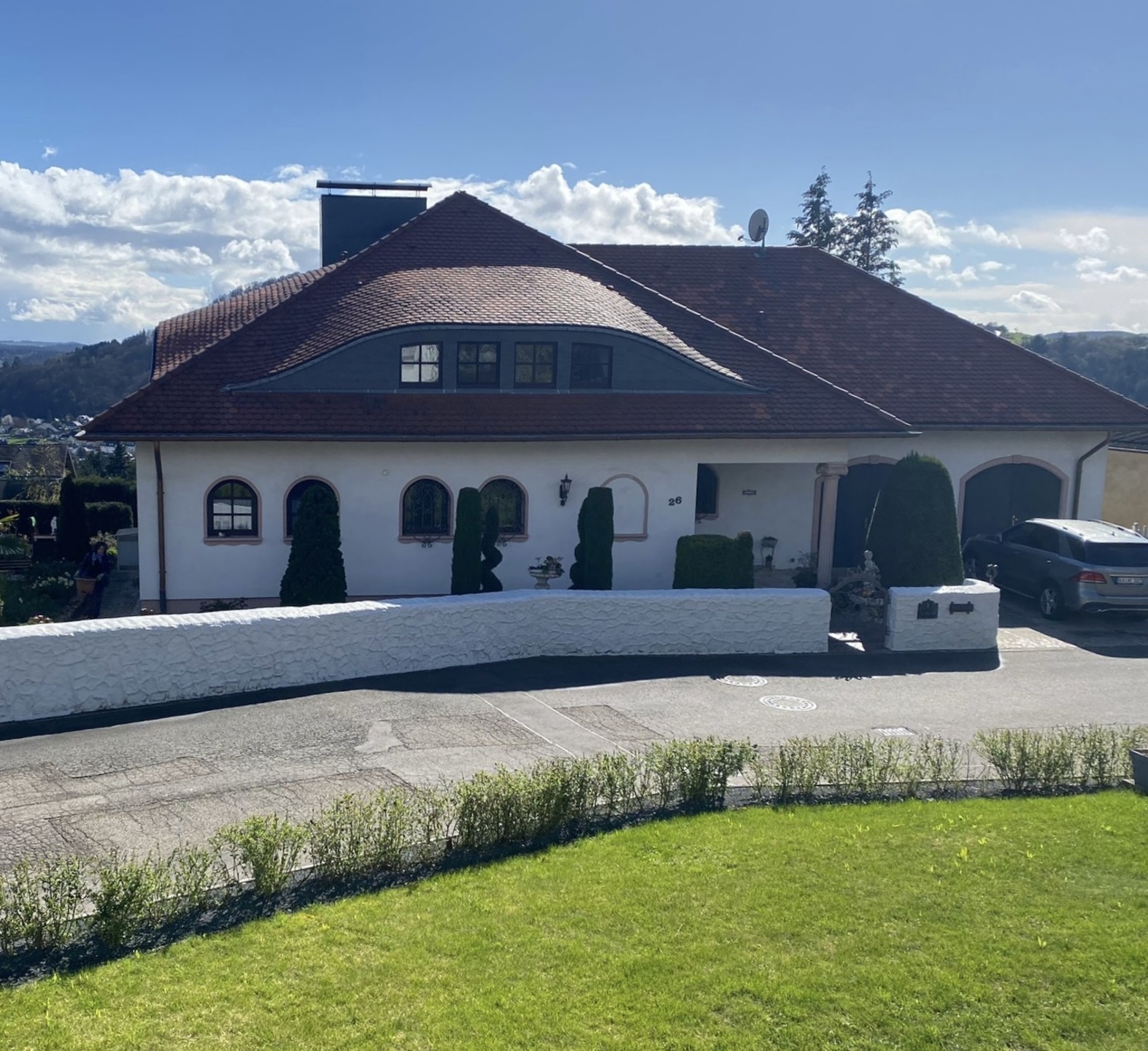 Zum Verkauf angeboten wird diese großzügige Villa in einer Höhenlage der Ortschaft Igel, Nahe Trier. Das Anwesen wurde im Jahr 1984 massiv und hochwertig auf einem ca. 1.332 m² großen Grundstück errichtet und bietet heute, verteilt auf drei Etagen und zehn Zimmern, ca. 404 m² Wohnfläche und zusätzliche ca. 150 m² Nutzfläche.