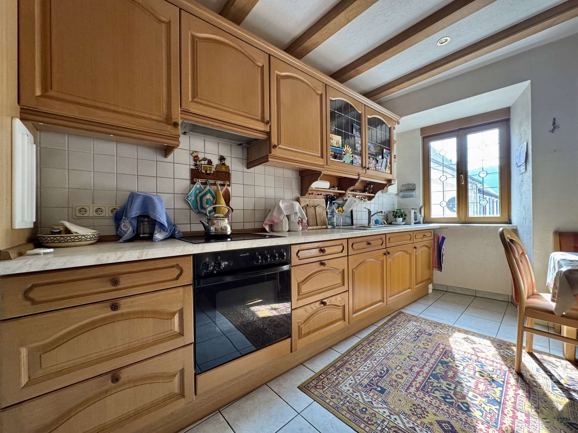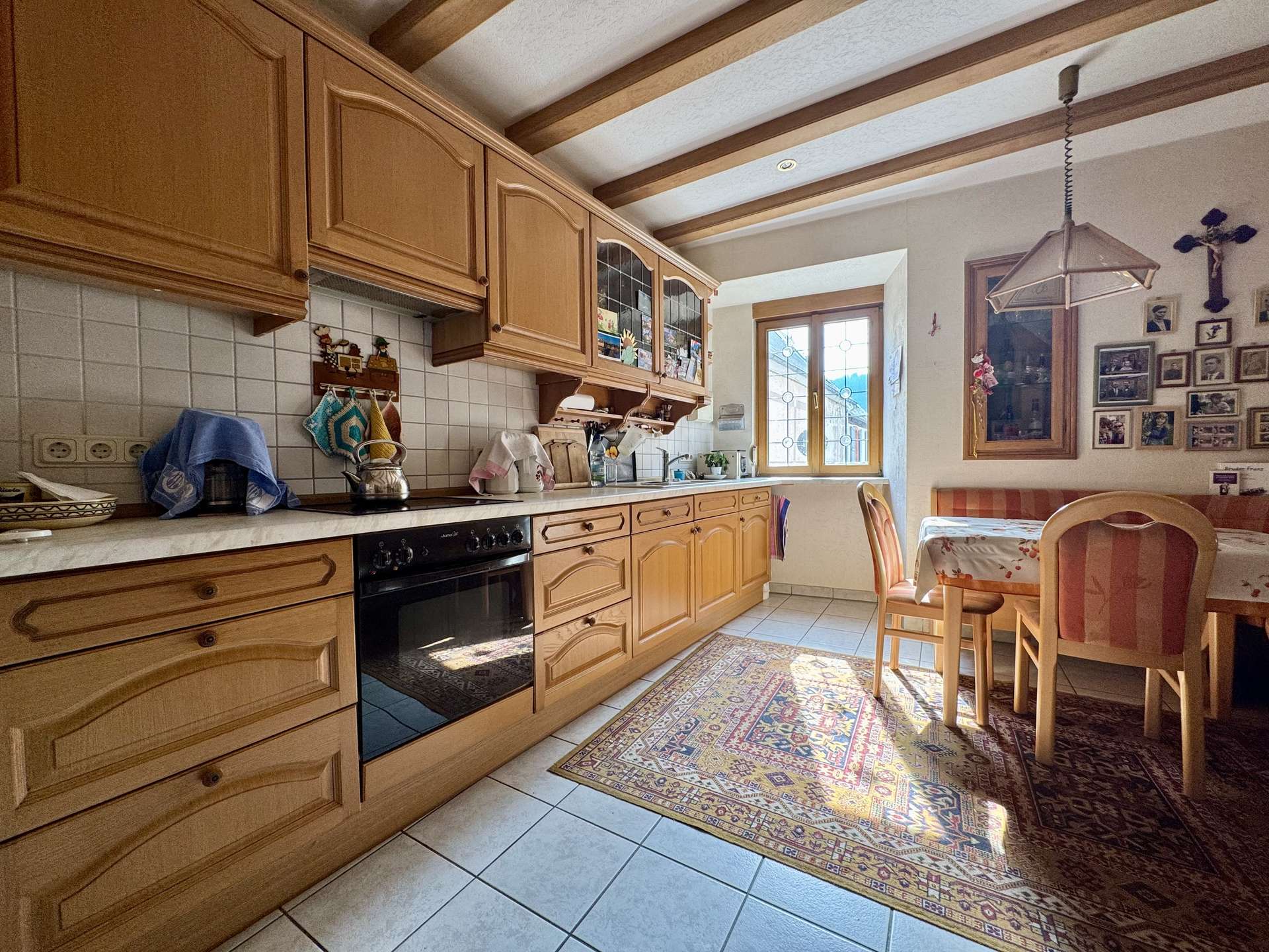 Eine Einbauküche ist vorhanden. Ebenso ein Kachelofen und teilweise Elektroheizung.