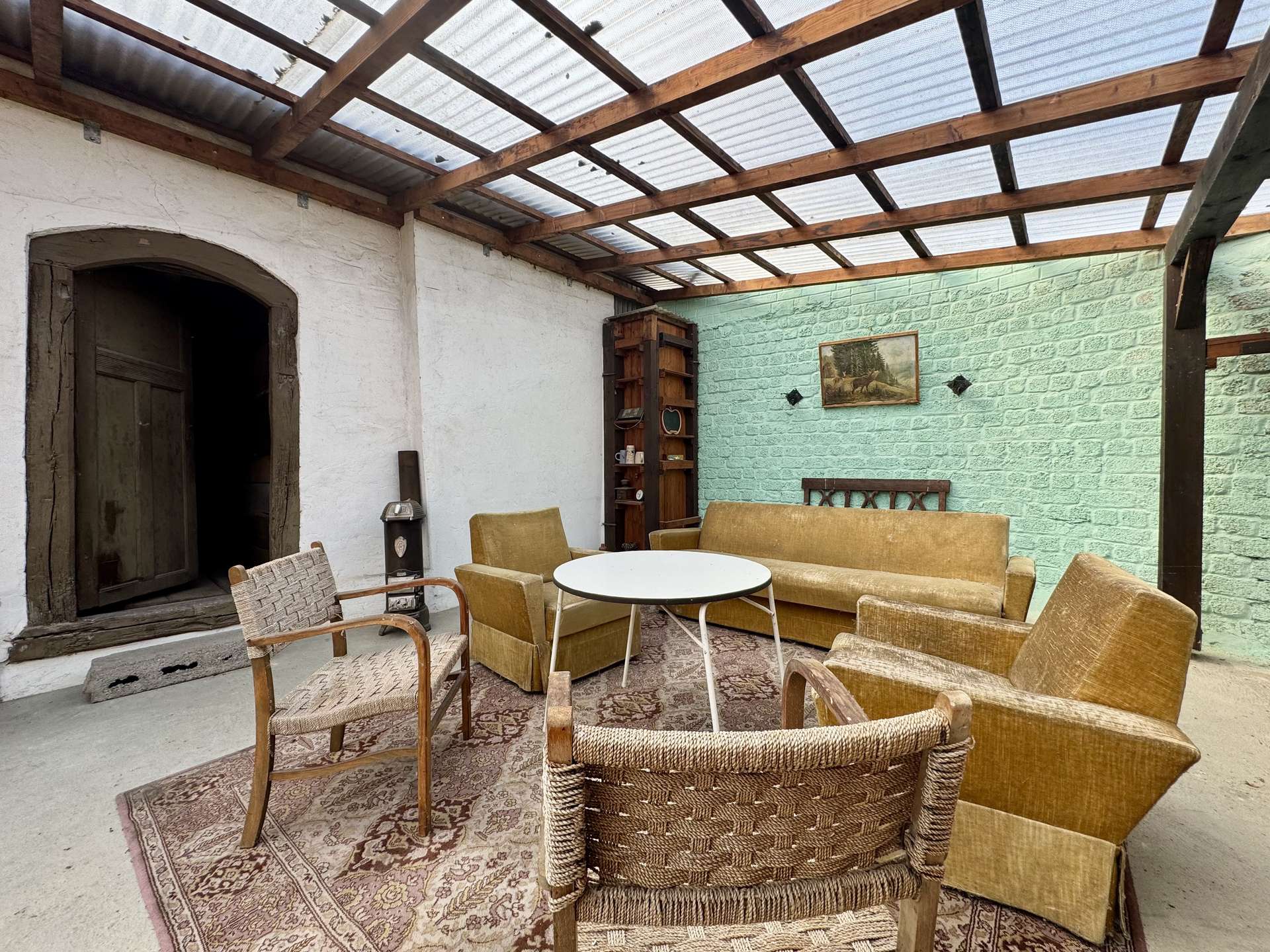 Das Nebengebäude verfügt über 3 Etagen und nach hinten über eine Garage und einen kleinen Garten.