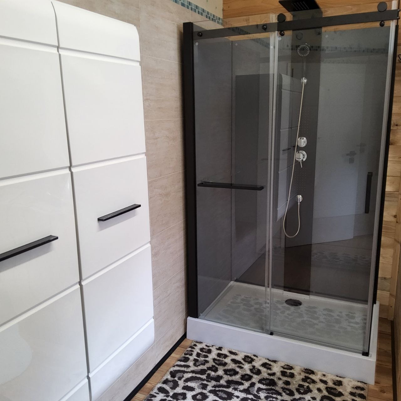 Hier bevindt zich een keuken, gezellige woonkamer, badkamer en een hele mooie slaapkamer.