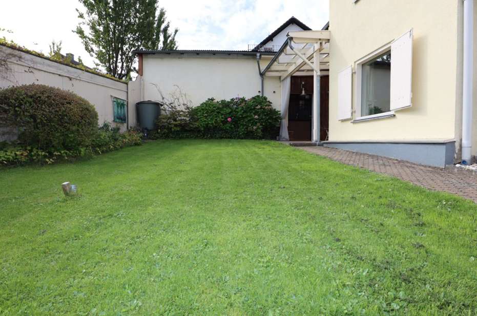 Außen: Garage, Scheune mit zweiter Garage, Heizungsraum, Werkstatt, Holzlager, große Terrasse mit pflegeleichtem Garten