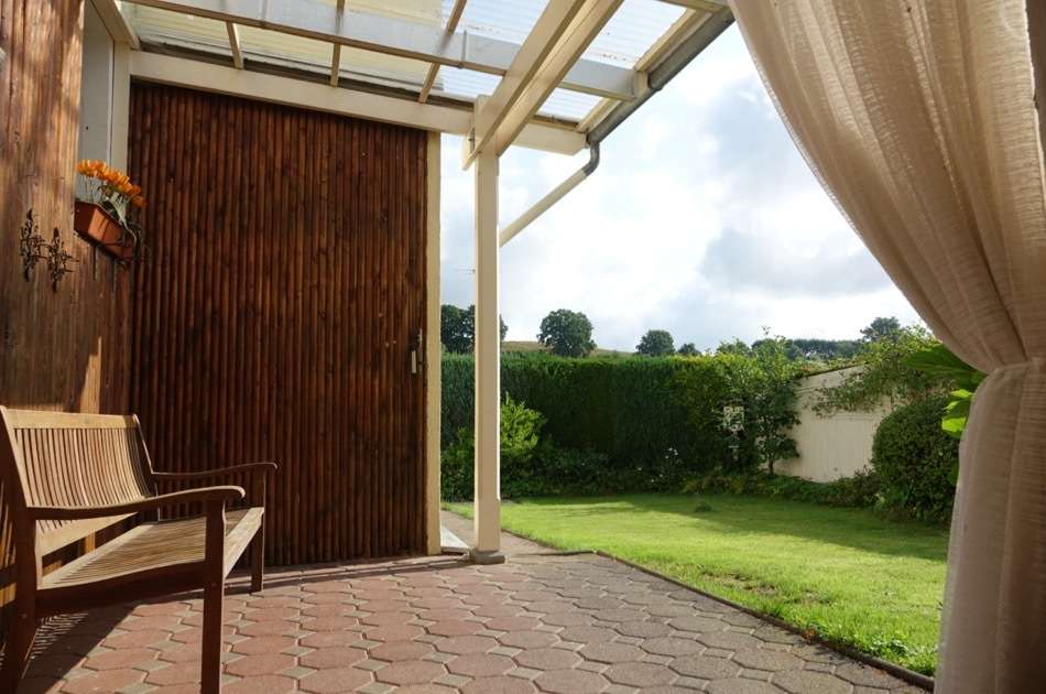 Das Grundstück ist 618 m² groß. Der Garten ist pflegeleicht mit schöner Heckenbepflanzung angelegt. Hier können sich Gartenfreunde verwirklichen. Der Garten hinter dem Haus bietet Privatsphäre. Ein überdachter Freisitz verlängert die Gartensaison. Dort lässt es sich windgeschützt auch noch im Herbst sitzen. Vor dem Haus befindet sich ein weiterer gemütlicher Sitzplatz, der nach vorne hin durch gewachsene Hecken geschützt ist. Platz zum Parken gibt es auf dem öffentlichen Parkplatz direkt am Haus und vor und im Nebengebäude, sowie in der Garage.