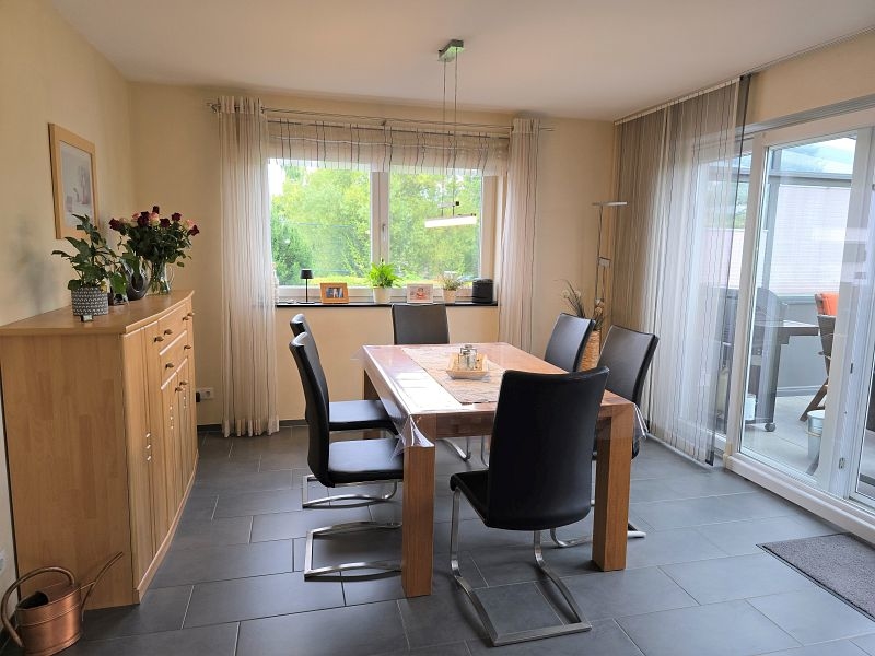 Aufgrund der Ortsrandlage genießt man von der überdachten Außenterrasse einen wunderschönen Ausblick auf die umliegenden Wiesen. Ruhe pur!!!