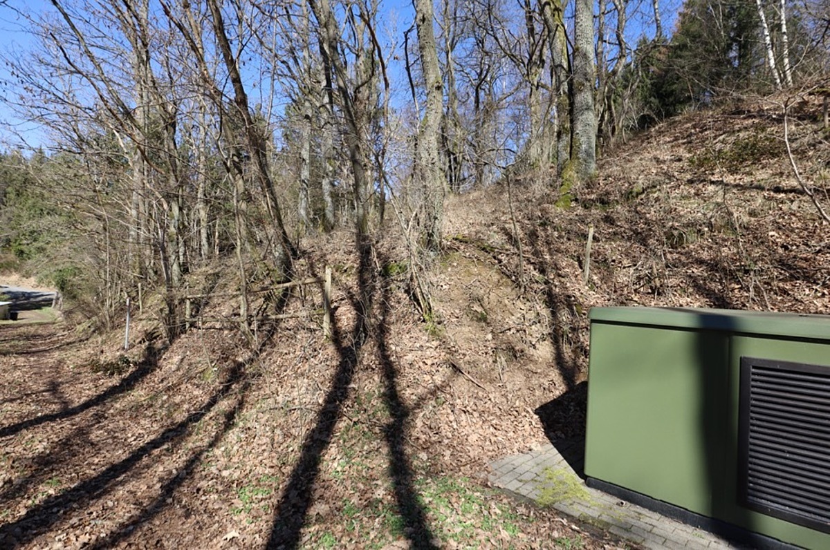 Baugrundstück mit Hanglage und Baumbestand, dreieckiger Zuschnitt, im Wochenendhausgebiet Mehren