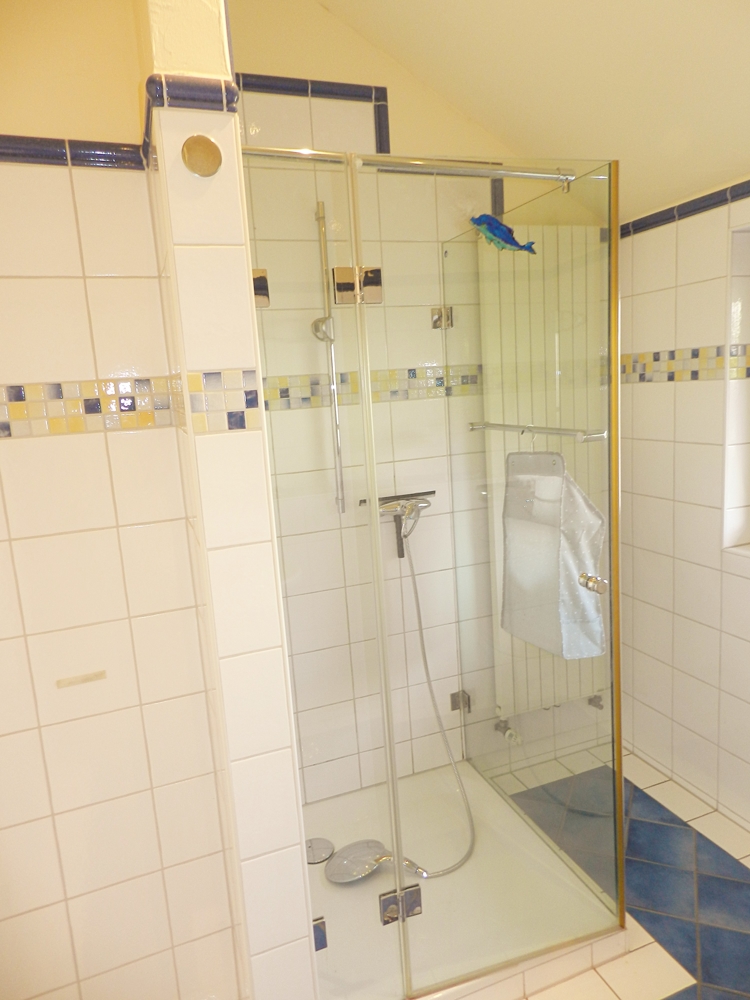 Im ersten Obergeschoss sind drei Schlafzimmer, ein helles, renoviertes Badezimmer mit Wanne und Dusche, ein großer Balkon mit Markise und Überdachung. Als Nutzflächen stehen dieser Wohneinheit ein begehbarer Dachboden und Kellerräume zur Verfügung. In einem dieser Keller steht die Öl-Zentralheizung, die Wohneinheit 1 und 3 mit Warmwasser und Heizung versorgt (4 Doppelwandige-Öltanks à 1000l).