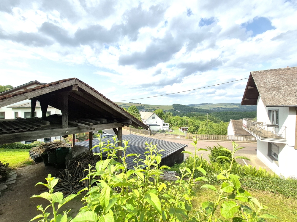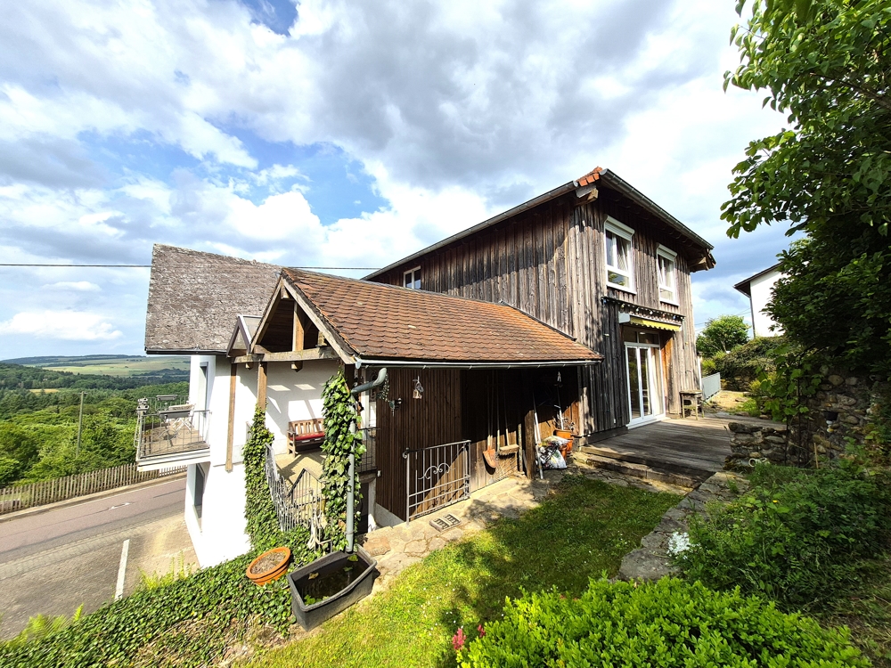 Gebouw met drie wooneenheden, garages, tuin, boomgaard/weide en een prachtig panoramisch uitzicht te koop in Ollmuth.