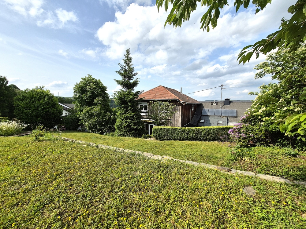 Der Garten wurde mit Schiefermauern liebevoll terrassiert und teilweise mit Terrassenplatten und Kinderspielgeräten ausgestaltet. Das Anwesen bietet Ihnen viel Platz für Kinder und Erholung.