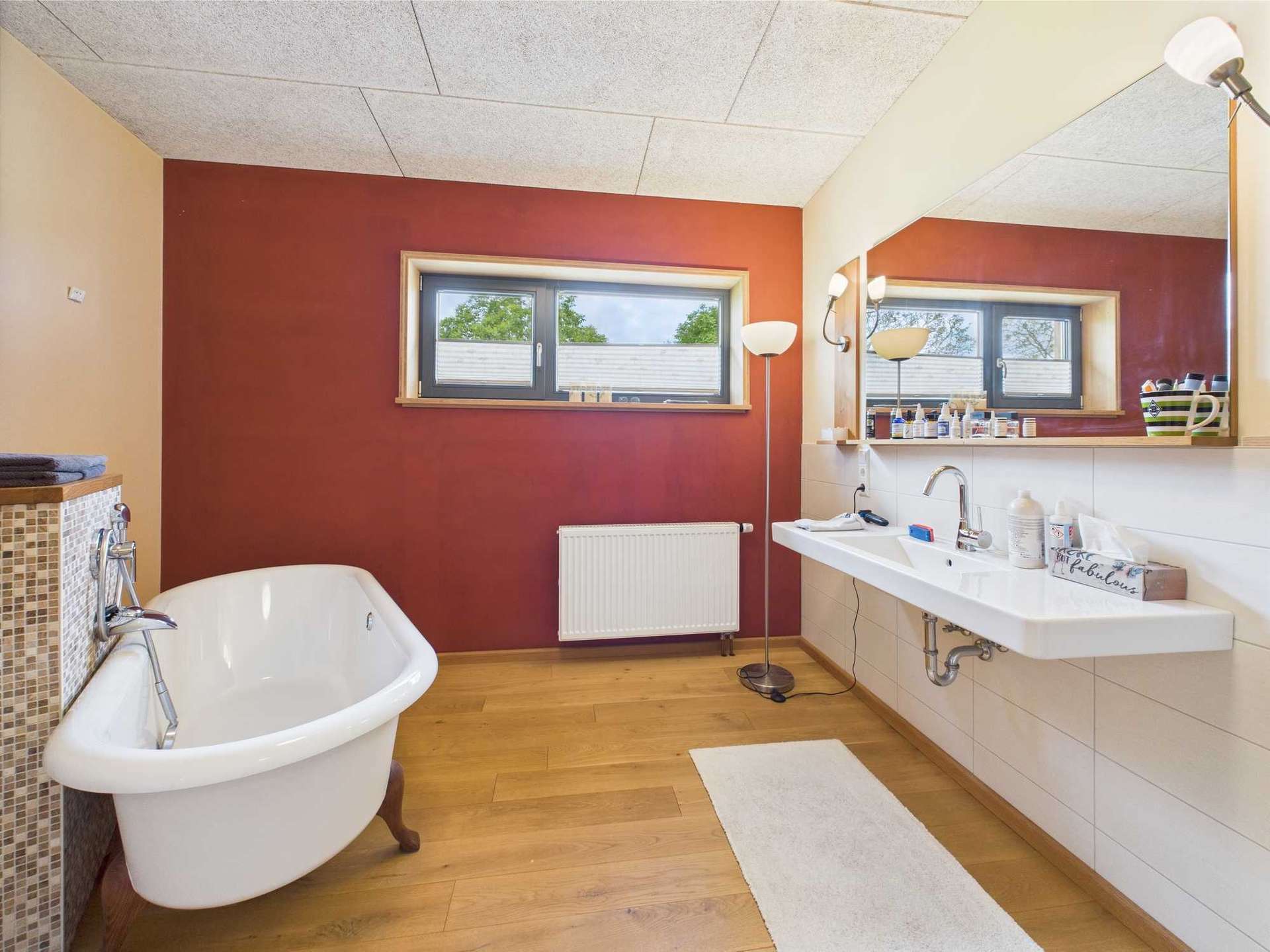 Das großzügige Badezimmer mit freistehender Wanne und bodentiefer Dusche bietet sowohl belebende Frische am Morgen als auch entspannte Wellness-Momente am Abend. Ein Gäste-WC sowie ein Haustechnikraum vervollständigen das Raumangebot dieses durchdachten Hauses.