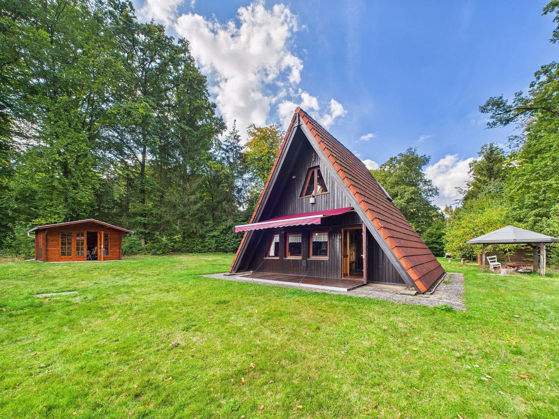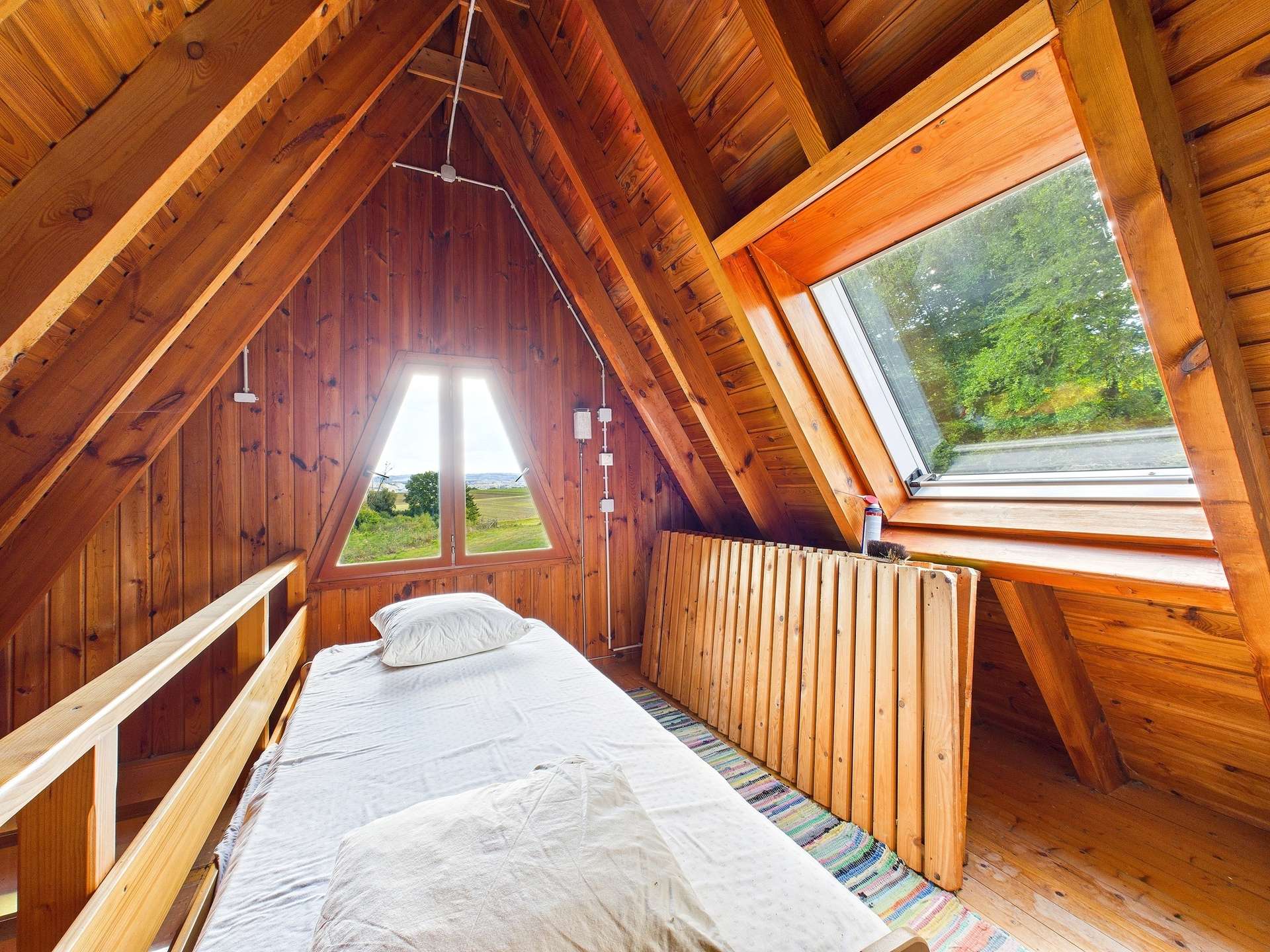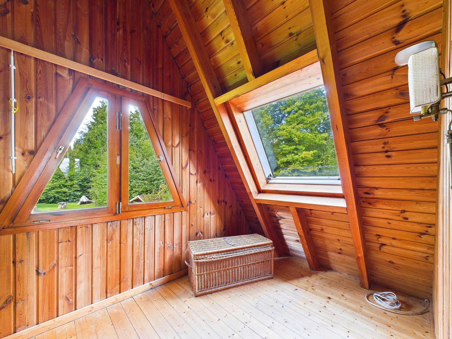 Das Haus, erbaut ca. 1975, präsentiert sich als echtes Unikat: Über zwei Etagen verteilt, bietet es rund 50 m² Wohnfläche (nach Abzug der Schrägen) und den unvergleichlichen Charme eines Ferien- oder Wochenendhauses.