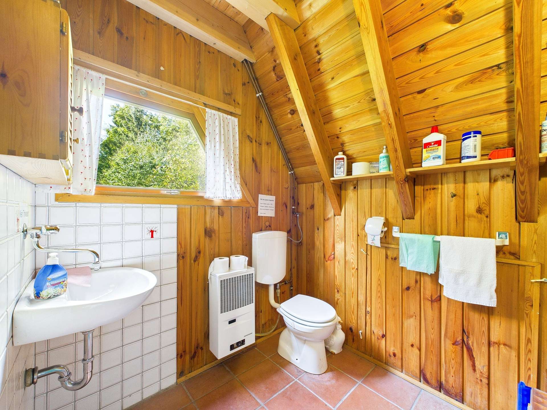- Die Wasserversorgung erfolgt über eine Regenwasserzisterne.