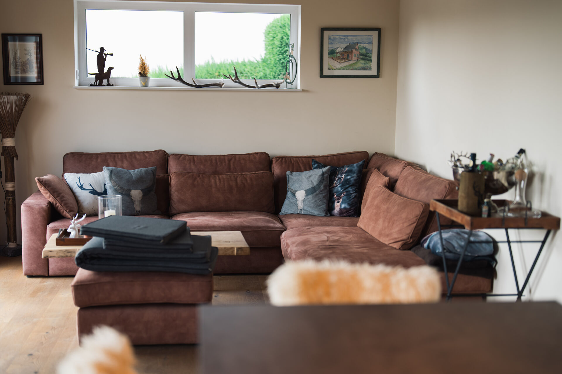 Vloerhoge PVC-kozijnen met driedubbele beglazing zorgen voor lichte ruimtes en optimale energie-efficiëntie. De verwarming wordt verzorgd door een milieuvriendelijke lucht-waterwarmtepomp. De hoogwaardige vloerbedekking onderstreept de luxe ambiance van de woning.