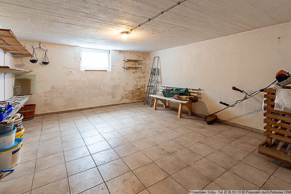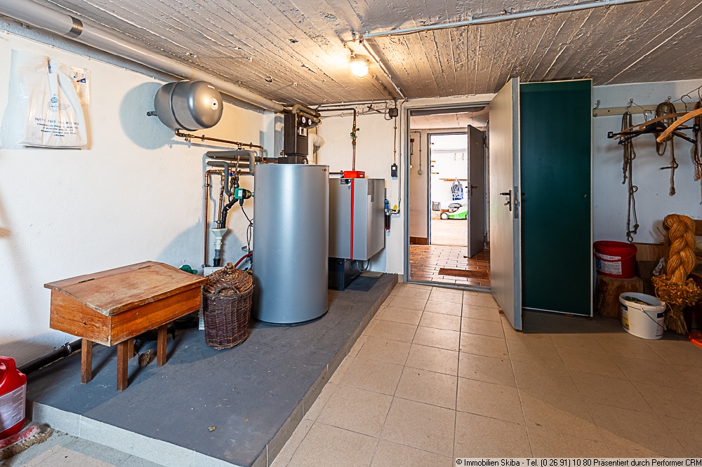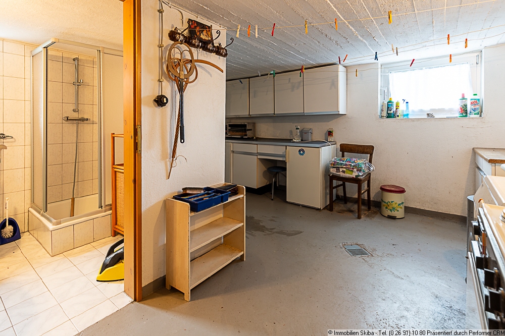 Innengarage mit Zugang ins Haus, Flur, Waschküche mit Dusche/WC und mit Ausgang in den Garten, Abstellkeller, Heizungskeller und Öllager