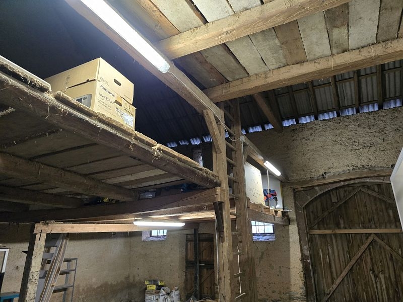 Rechts in der Verlängerung vom Wohnhaus befindet sich die ehemalige Hofstelle mit Stall und Scheune und Garage. Das großzügige Gebäude bietet zum Arbeiten, für Freizeit, als Lager, für Autos, Wohnmobile, Boot, Werkstatt und vieles mehr ein hervorragendes Platzangebot. Die Höhe der Stallung beträgt ca. 2,30 m. Die Höhe der Scheune bis unter den First beträgt ca. 8,90 m.