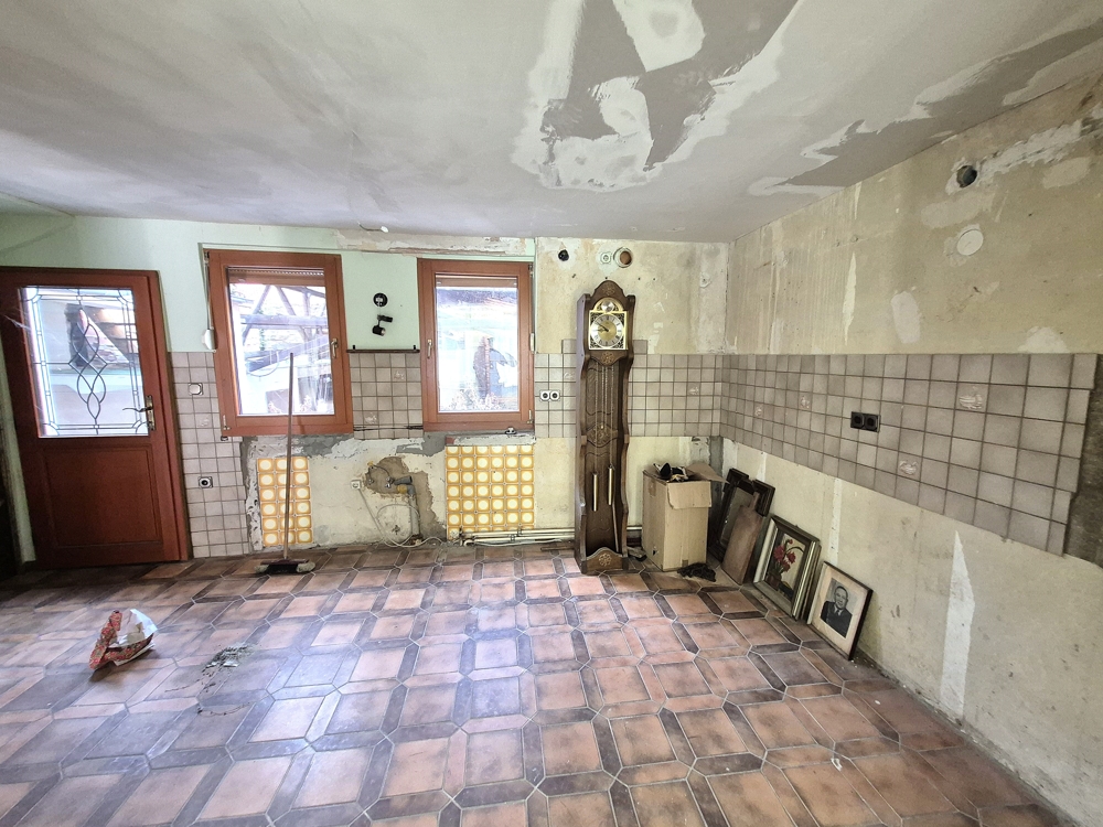 Vanwege waterschade op de begane grond is de badkamer verwijderd en is de vloer op de begane grond verwijderd en gedeeltelijk opnieuw geïnstalleerd. De toekomstige eigenaar zal eerst een uitgebreide renovatie en modernisering moeten uitvoeren voordat de woning weer kan worden bewoond.
