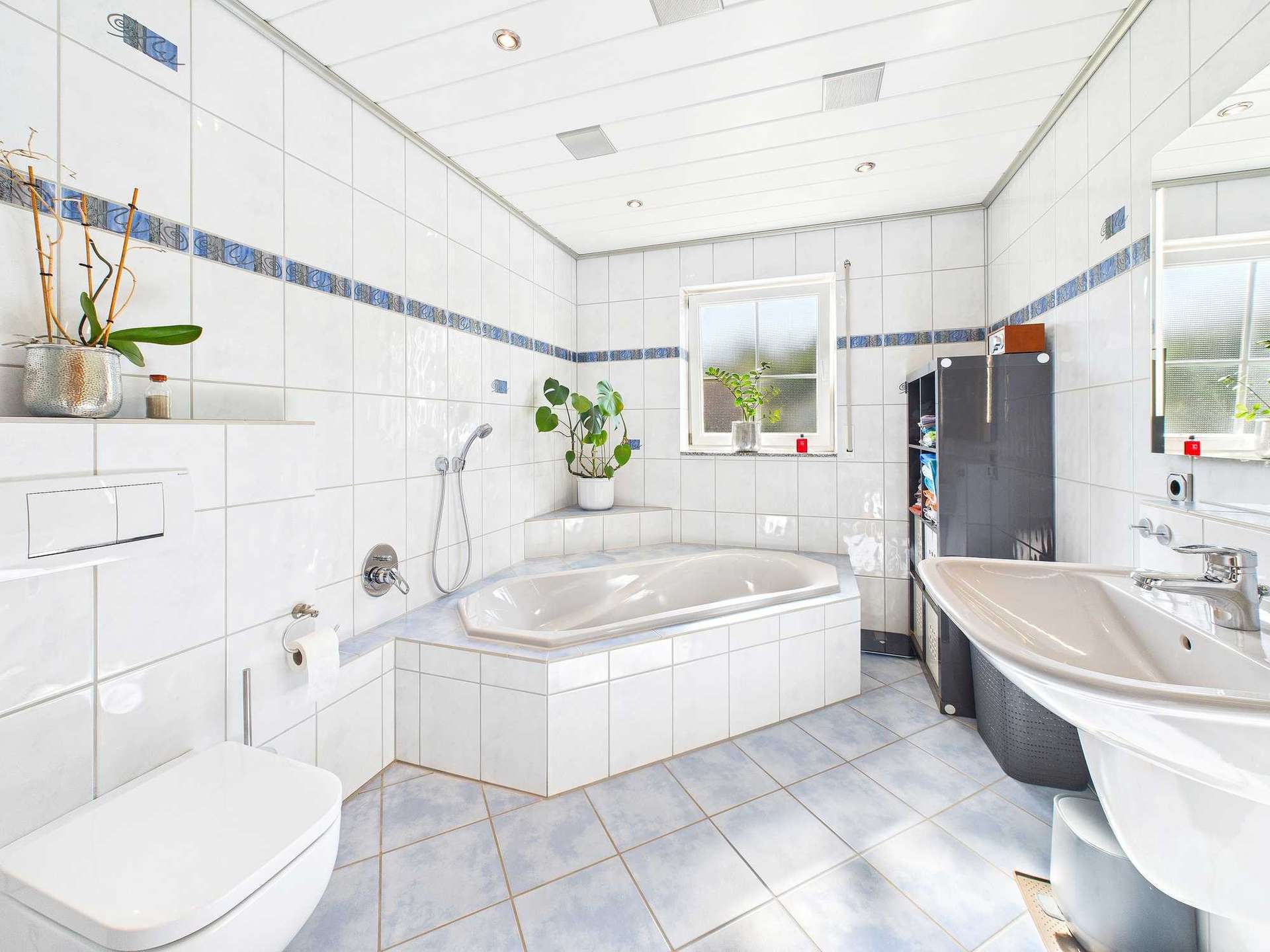 + Hochwertige Bauausführung mit beispielsweise Naturschieferdach, Kupferregenrinnen und Granitböden