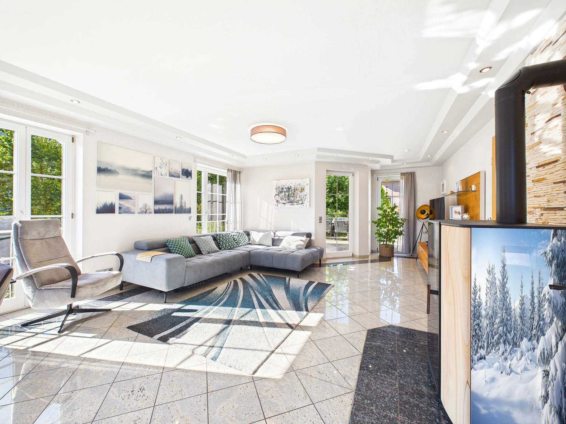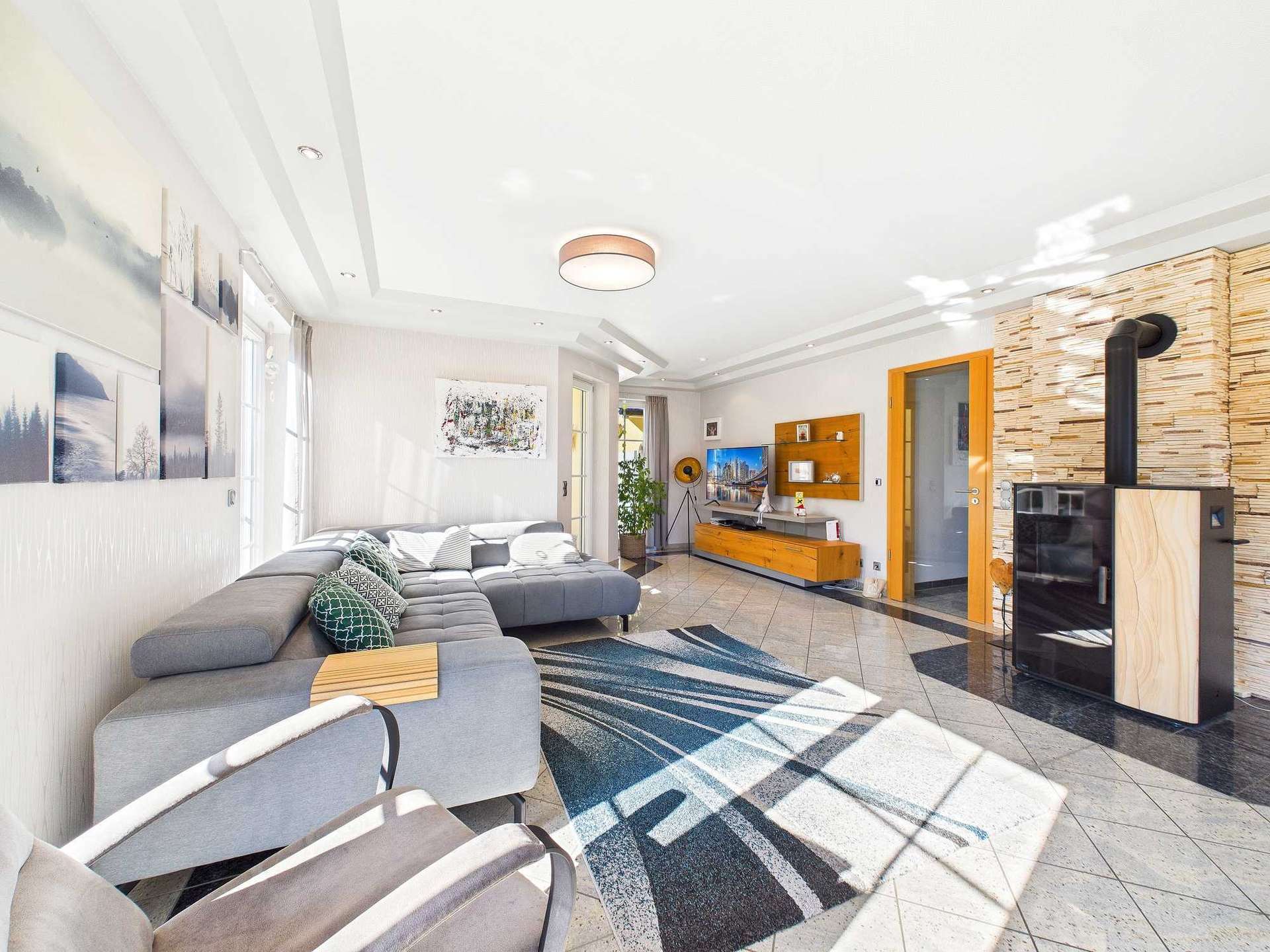 Schon die äußere Erscheinung signalisiert Qualität: Das Dach ist mit edlem Naturschiefer eingedeckt, die Regenrinnen bestehen aus Kupfer und fügen sich harmonisch in das Gesamtbild ein. Im Inneren unterstreichen Granitböden das hochwertige Ambiente. Ergänzt wird die Ausstattung durch eine neuwertige Pelletheizung, eine Solaranlage sowie einen Pellet-Holzofen im Wohnzimmer, die für ein energieeffizientes und nachhaltiges Heizkonzept sorgen.