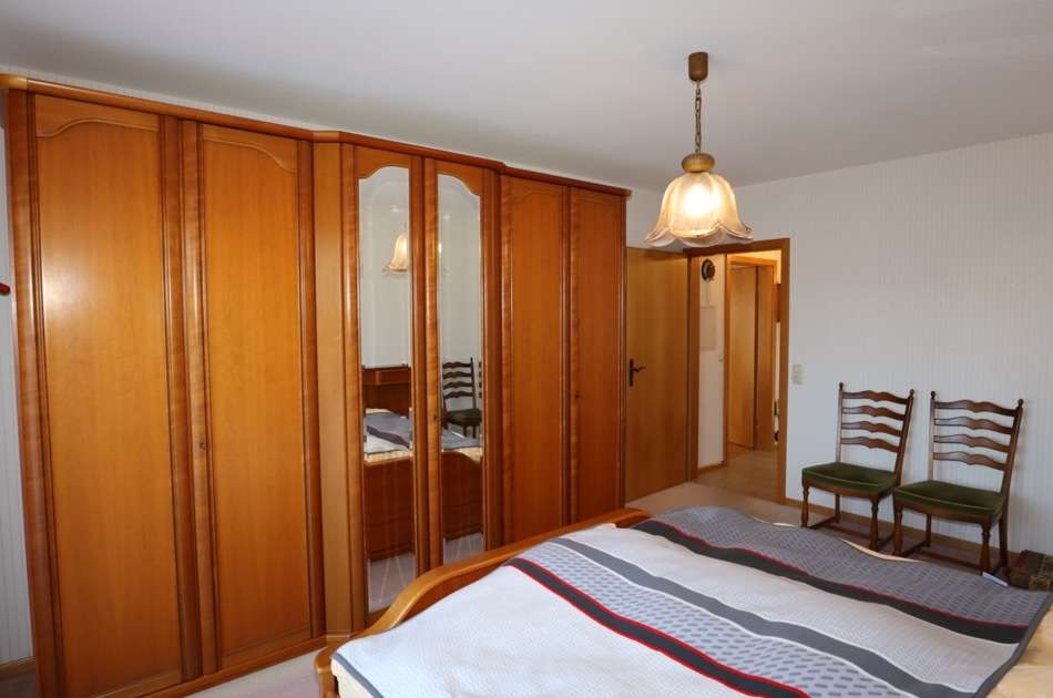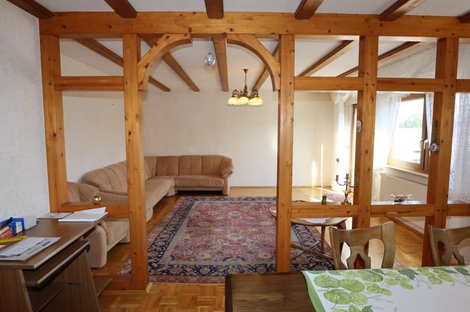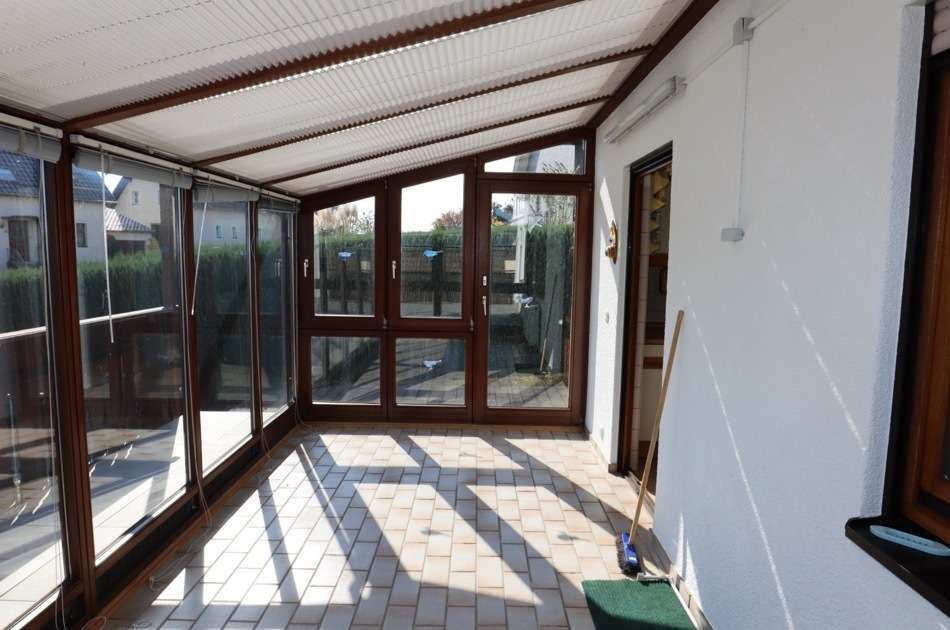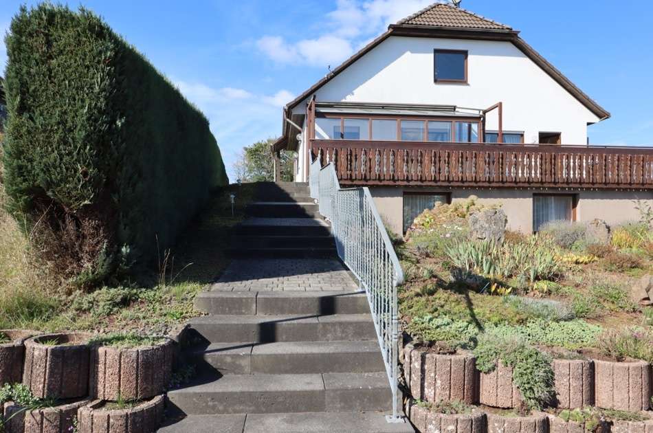 Die Gesamtwohnfläche von 159 m² verteilt sich auf 98 m² im Erdgeschoss und 61 m² im Kellergeschoss. Das Erdgeschoss verfügt über eine Diele mit Treppenhaus, Wohn- / Esszimmer, Küche, Gäste-WC, Bad und Schlafzimmer. Das Schlafzimmer hat einen kleinen separaten Balkon mit Blick ins Grüne und es gibt eine schöne Terrasse mit geräumigem Wintergarten für gemütliche Stunden. Im Kellergeschoss befinden sich eine Diele mit separatem Nebeneingang, Bad, ein praktischer Hauswirtschaftsraum mit Sauna, zwei Schlafzimmer und ein Wohnzimmer. Zudem befindet sich hier ein Abstellraum, der Heizungsraum, HAR und ein Weinkeller. Das Dachgeschoss erreicht man über eine Zugleiter. Hier gibt es zusätzlichen Stauraum. Die neben dem Haus befindliche separate große Einzelgarage bietet genügend Platz für eine kleine Werkstatt. Der gepflasterte Bereich vor der Garage bietet zudem weitere Stellplätze für Pkw.