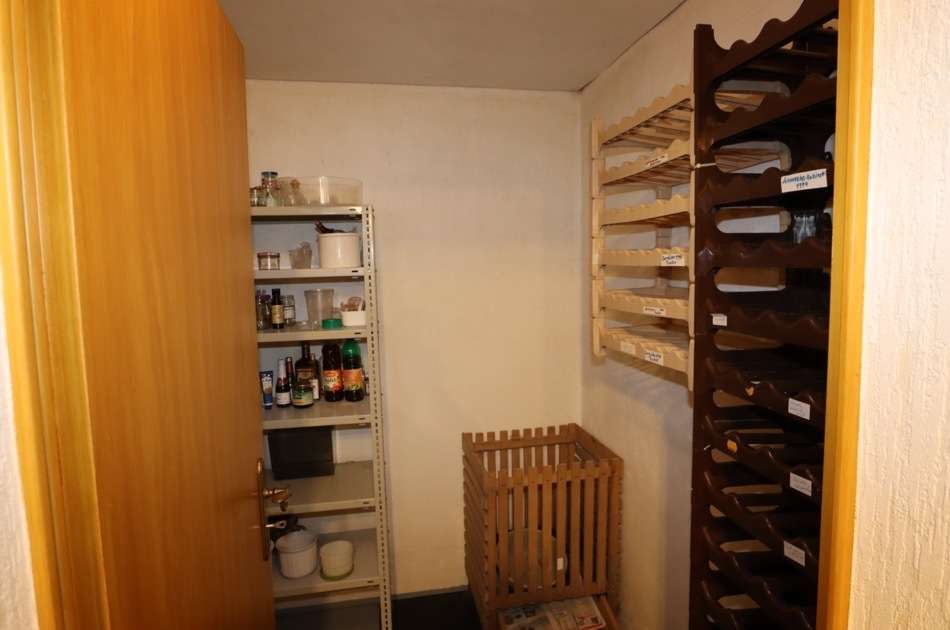 Kellergeschoss: Nebeneingang, Flur, 2 Schlafzimmer, Wohnzimmer, Bad mit Dusche und WC, HWR mit Sauna, Abstellraum, Heizungsraum, Trenntür zur Diele und Treppenhaus, Weinkeller, HAR.