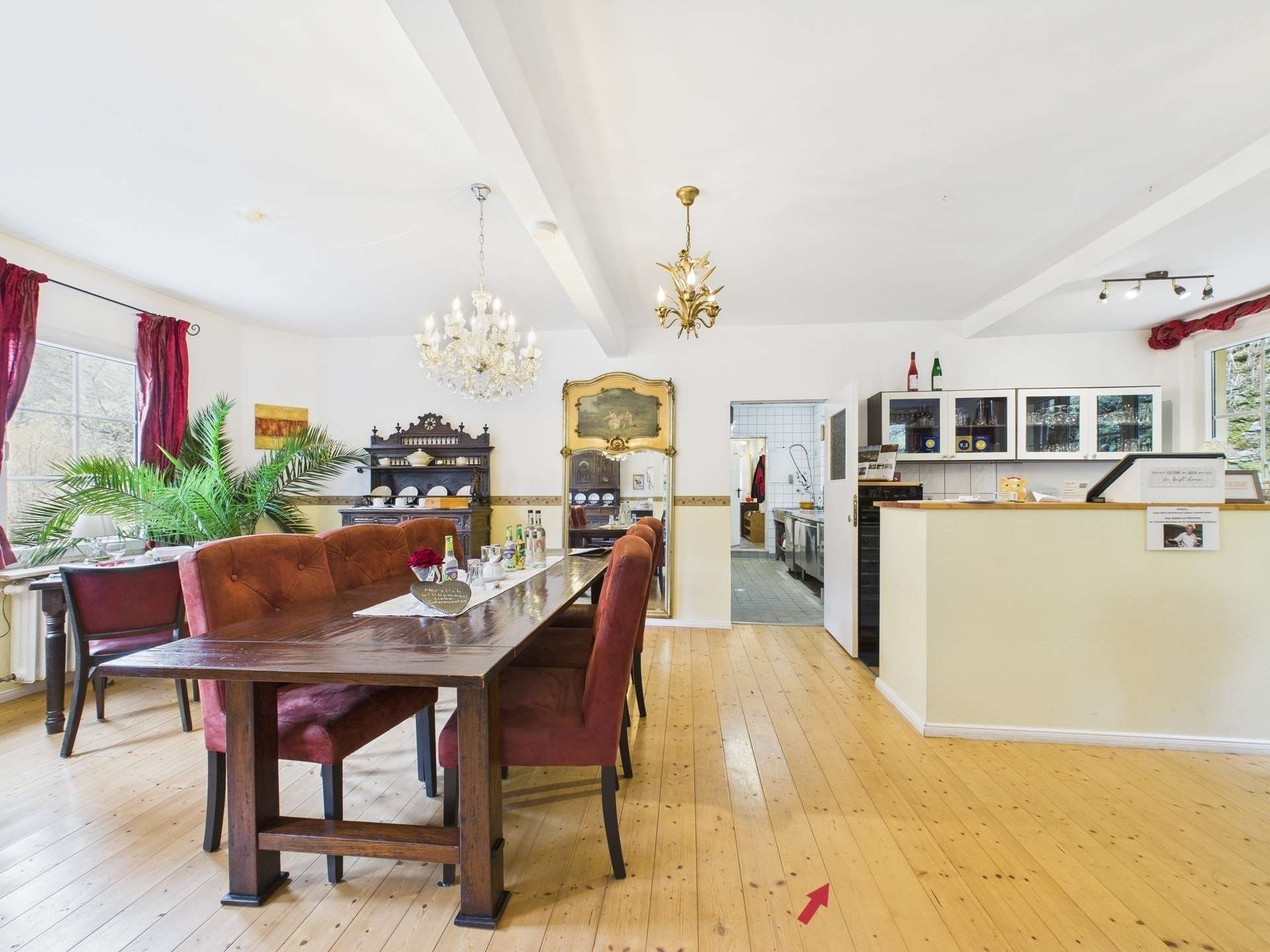 Der Frühstücksbereich mit angeschlossener Rezeption lädt im Erdgeschoss zu geselligen Morgenstunden ein, während die professionell ausgestattete Industrieküche beste Voraussetzungen für eine reibungslose Bewirtung schafft. Eine nahegelegene Felsquelle versorgt das Haus mit herrlich frischem Wasser und unterstreicht den naturnahen Charakter dieser einzigartigen Immobilie.
