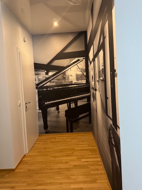 Der großzügige, lichtdurchflutete Wohnbereich mit offener Küche (wenig genutzt) schafft ein einladendes Raumgefühl und überzeugt durch klare Linien, hochwertige Materialien und ein harmonisches Farbkonzept.