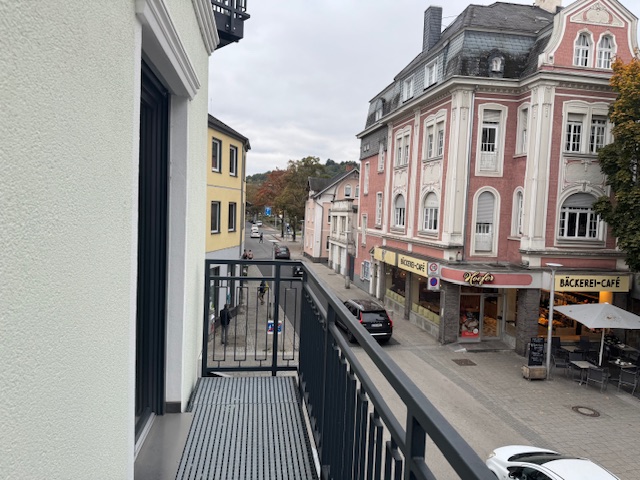 - Kleiner Balkon mit Blick in die Stadt