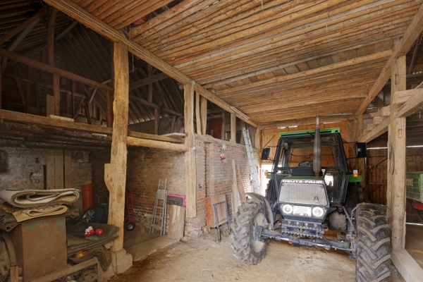 Grenzend aan het huis, en met directe toegang daartoe, bevindt zich de schuur met stal, gebouwd in 1954. Met een oppervlakte van ca. 175 m² biedt het onder andere opslagruimte voor auto’s, aanhangwagens of tractoren.
