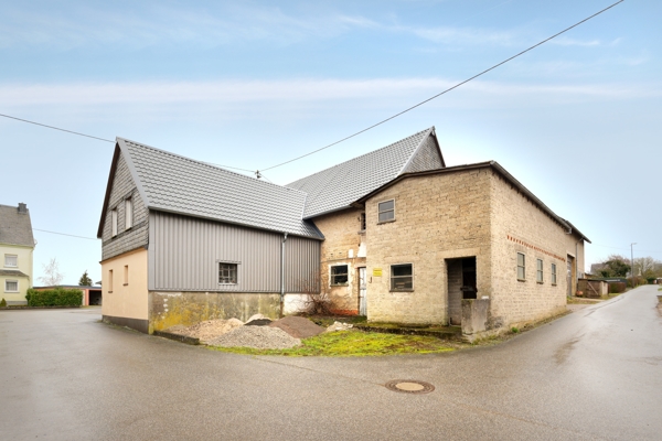Angrenzend zum Wohnhaus, und auch mit direktem Zugang zu diesem, befindet sich die Scheune mit Stall, die 1954 erbaut wurde. Mit einer Fläche von ca. 175 m² bietet sie unter anderem eine Unterstellmöglichkeit für Autos, Anhänger oder Traktoren. 2015 wurde das Dach mit Blech neu gedeckt.