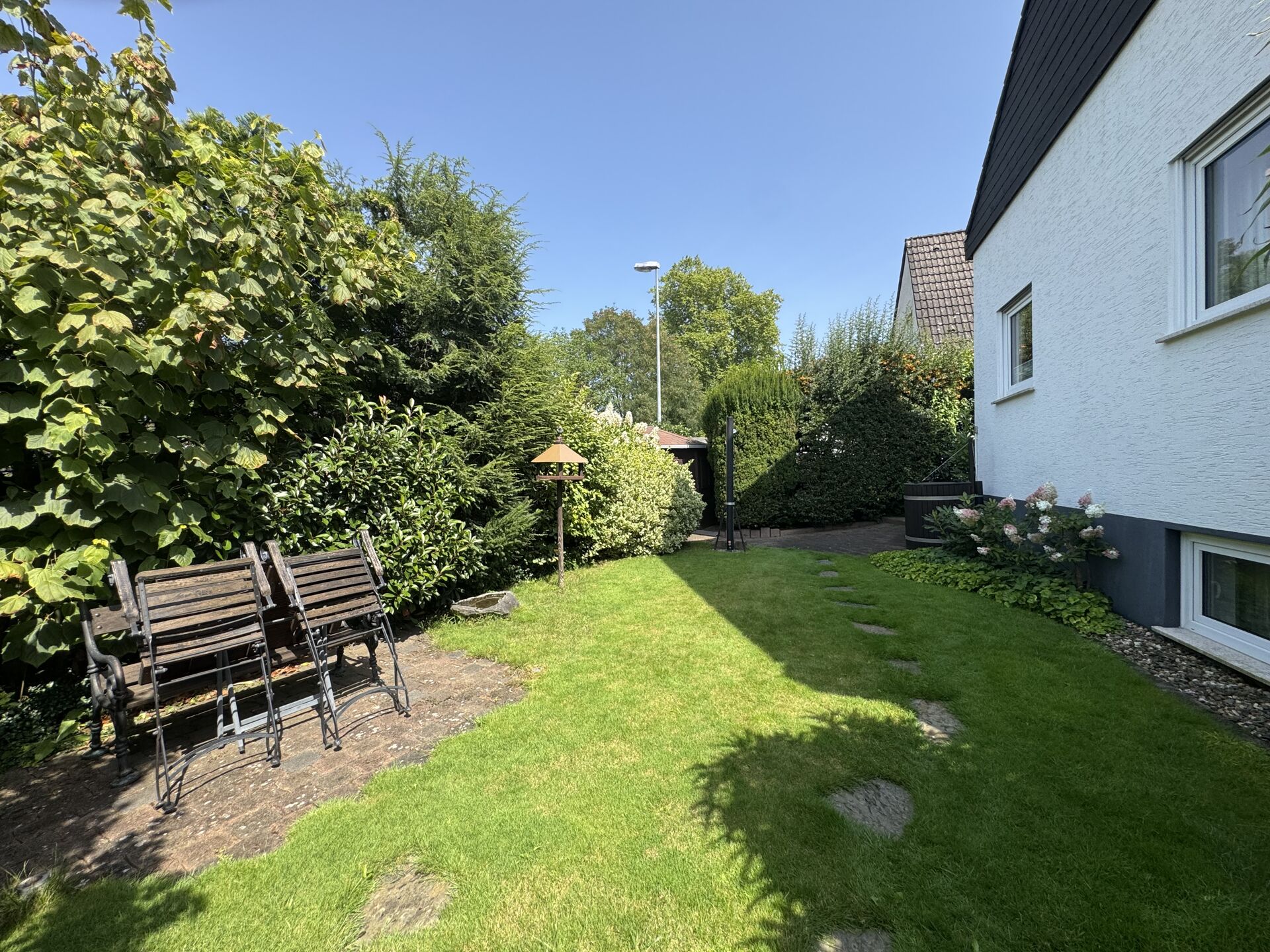 Auf einem großzügigen Grundstück von 361 m² genießen Sie in der schön gestalteten Außenanlage sowohl eine Terrasse als auch einen Balkon. Zwei Badezimmer sowie ein Gäste-WC bieten Komfort und Privatsphäre für alle Familienmitglieder. Die drei geräumigen Schlafzimmer laden nach einem langen Tag zum Entspannen ein.