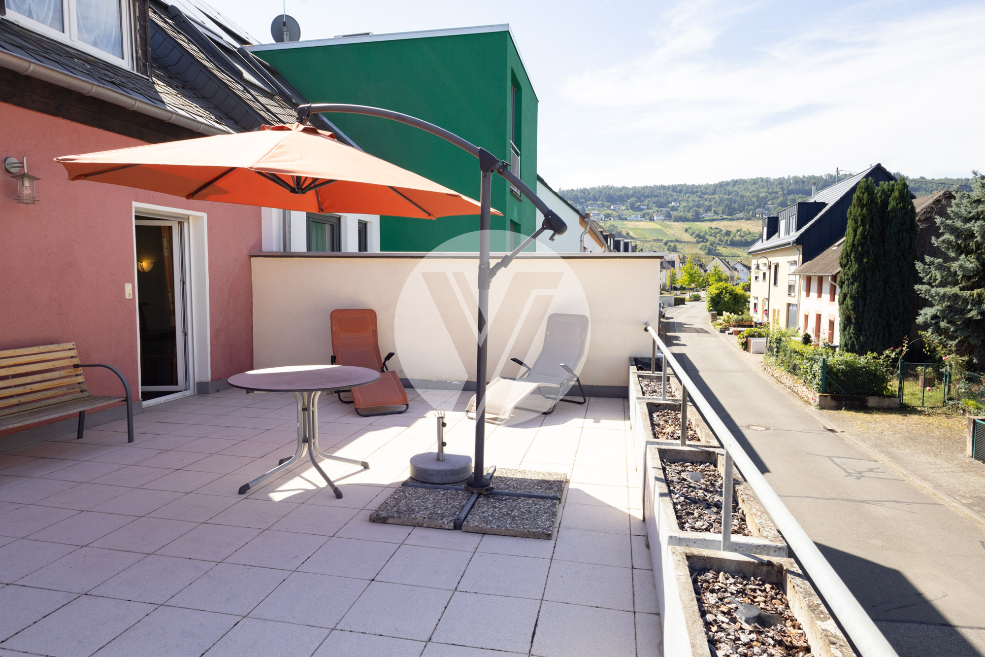 In zentraler Lage der zauberhaften Moselgemeinde sind Sie umgeben von einer Vielzahl an Freizeitmöglichkeiten entlang des Flusses sowie in den malerischen Weinbergen. Restaurants und Vinotheken, die Ihnen die erlesenen Köstlichkeiten der Region näherbringen, befinden sich ebenfalls in unmittelbarer Nähe. Das voll unterkellerte Reihenmittelhaus überzeugt durch individuellen Wohnraum auf gleich drei Etagen. Bereits beim Betreten werden Sie von einem großen Wohn-Essbereich und einer separaten Wohnküche im Erdgeschoss begrüßt, ergänzt durch ein Badezimmer. Mit wenigen Anpassungen könnte hier ein eigenständiges Ferienappartement entstehen, das Ihren Urlaubsgästen einen komfortablen Rückzugsort bietet. In den oberen Geschossen wurden bereits Gästezimmer mit eigenen Duschbädern und einer Gemeinschaftsküche geschaffen, was das Konzept eines großzügigen Ferienhauses perfekt abrundet. Eine große Dachterrasse im Obergeschoss lädt zu entspannten Stunden ein – der ideale Ort für Freizeit und Hobby!